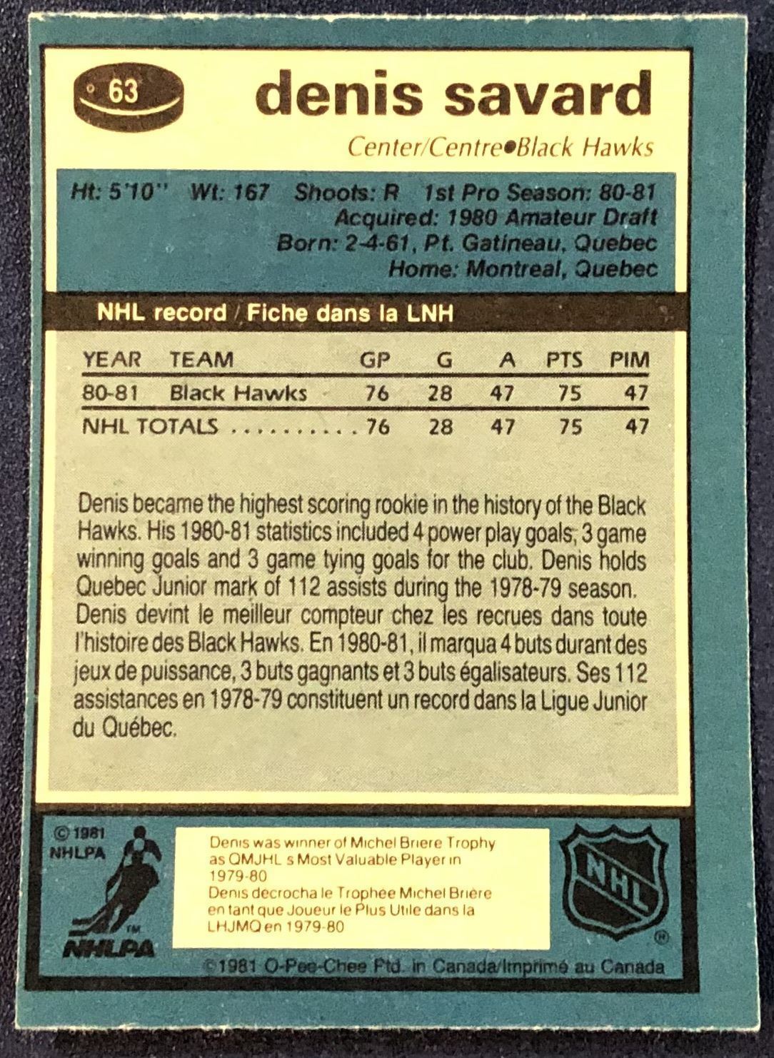 Lot 1476 1981-82 O-PEE-CHEE DENIS SAVARD (HOF) ROOKIE CARD