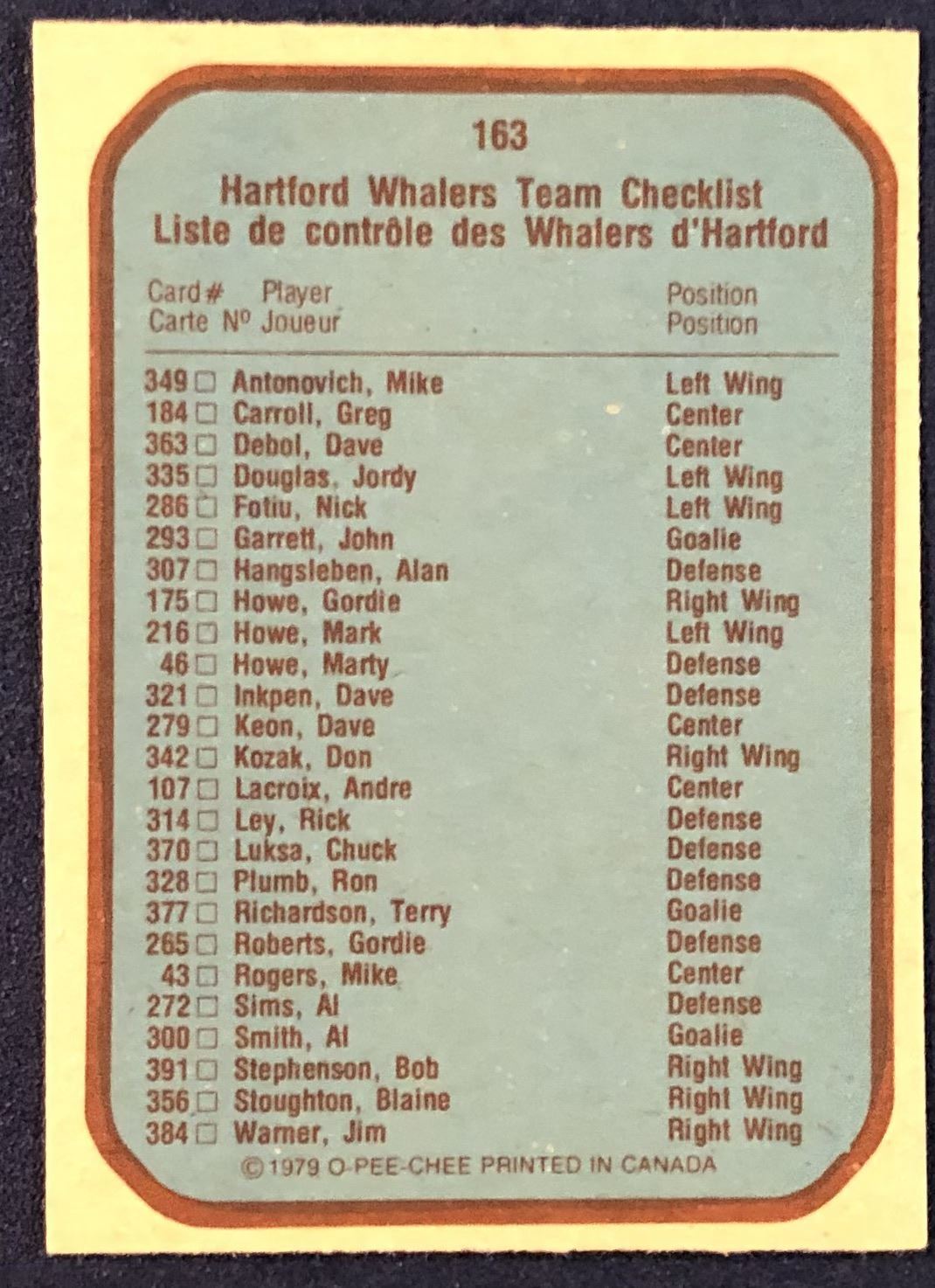 Lot 1478 1979-80 O-PEE-CHEE HARTFORD WHALERS