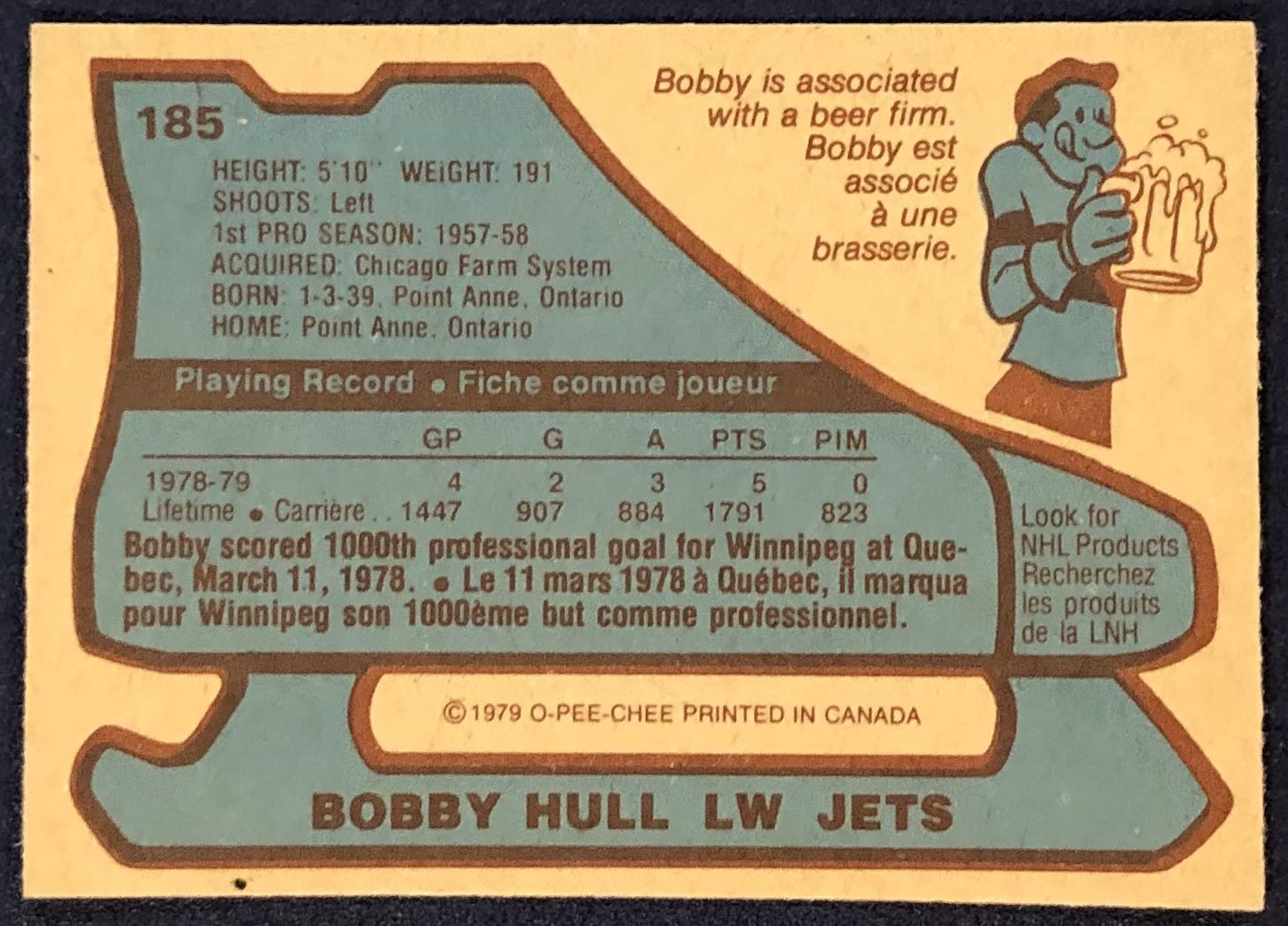Card #185 OPC, NHL, hockey, vintage, hall of fame