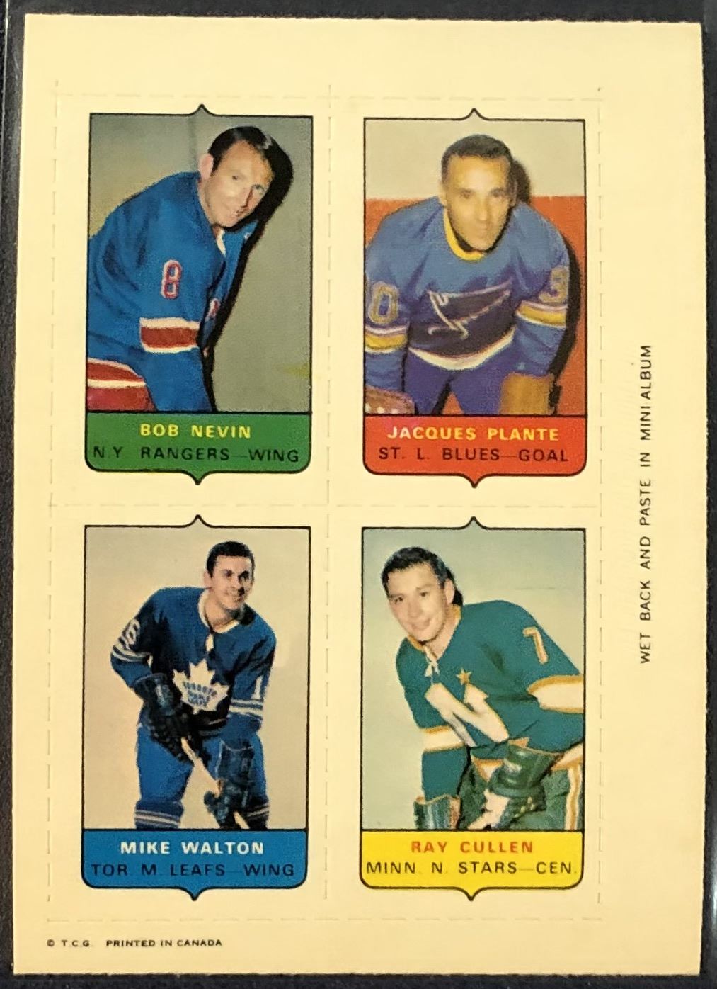 1969 O-PEE-CHEE HOCKEY 4-IN-1 JACQUES PLANTE (HOF)