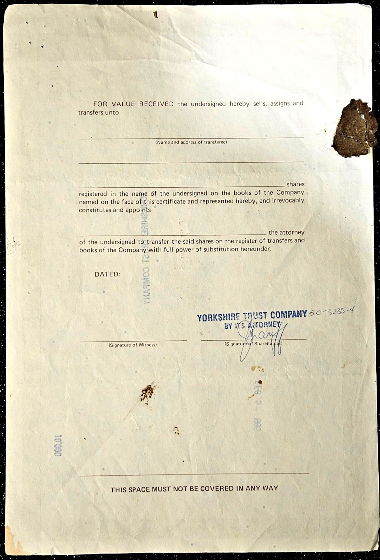 Vintage stock certificate with its authenticity papers.