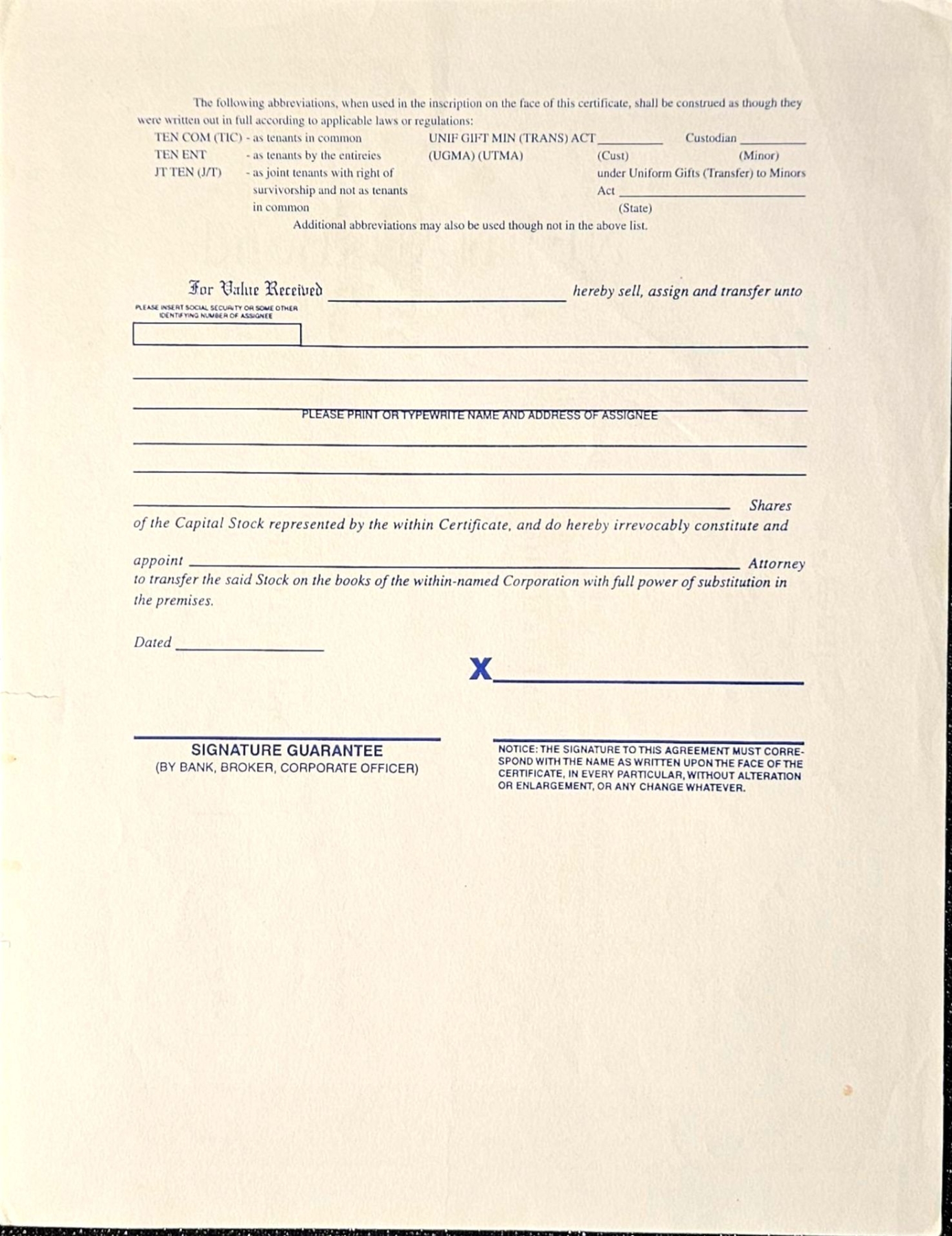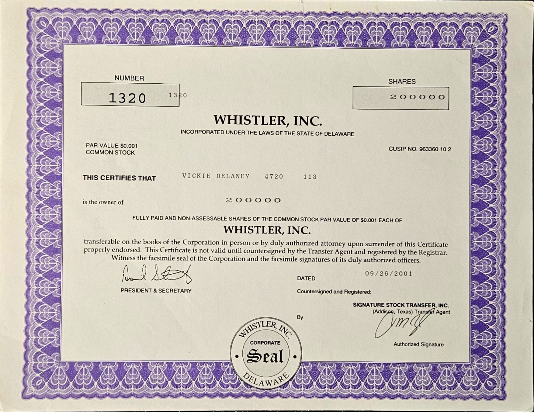 Lot 157 Vintage Stock Certificate (2001, Whistler Inc.)