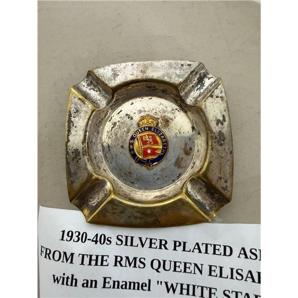 Lot 730 1930/40s silver plated ashtray from the RMS Queen Elizabeth ship
