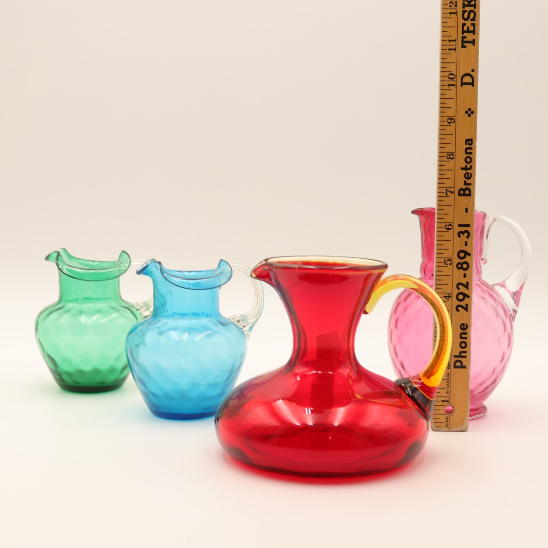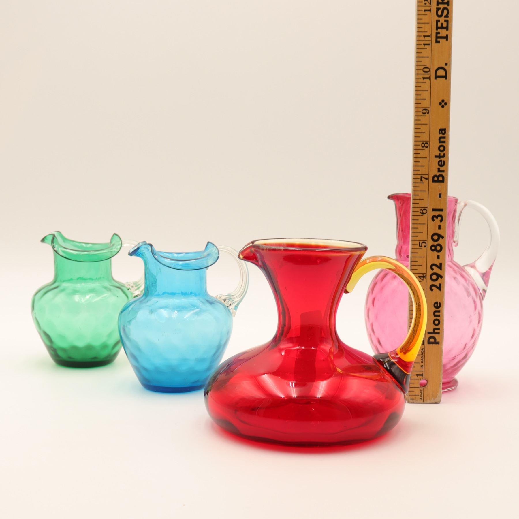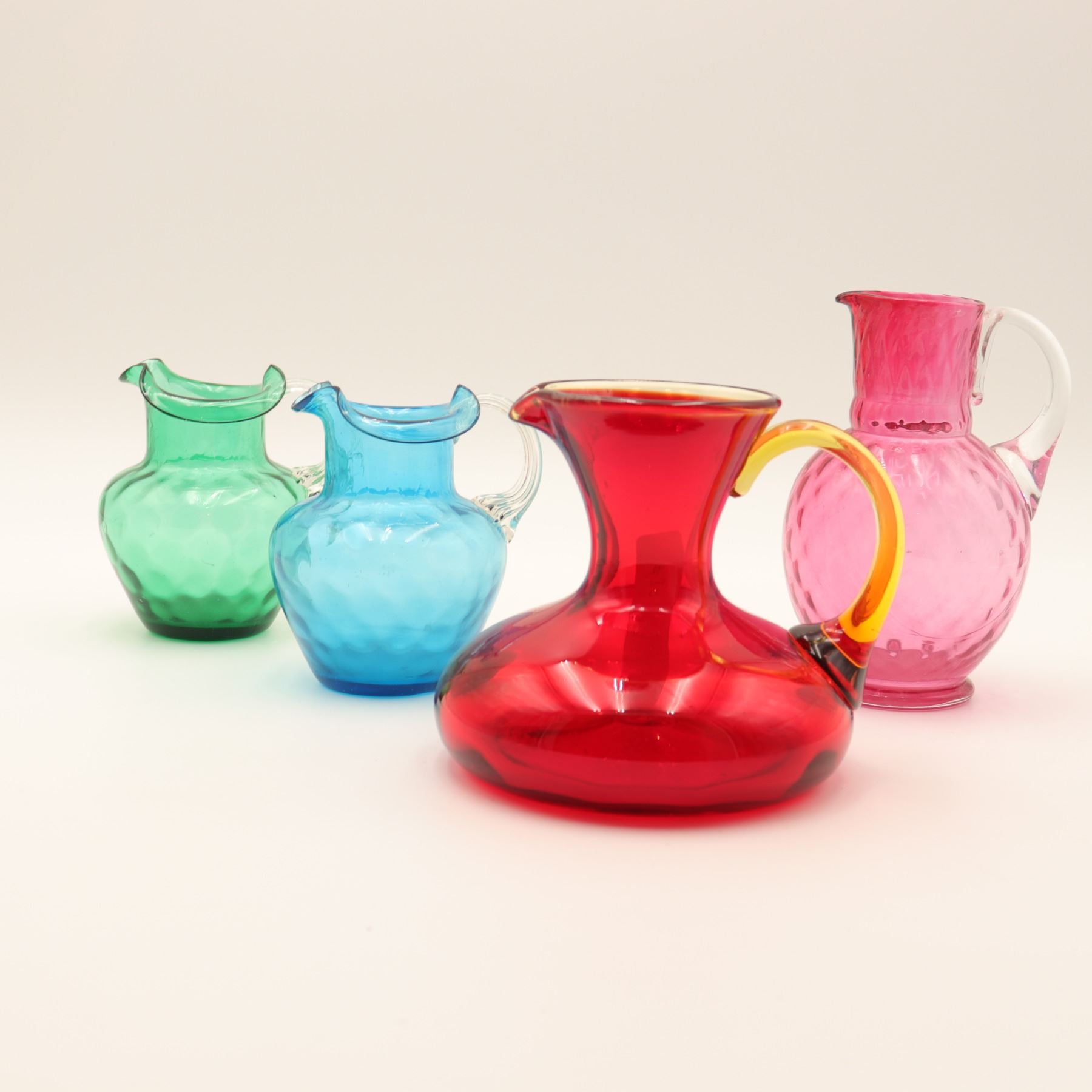 Lot 57 Group of Four Mid-Century Blown Art Glass Pitchers in Colored Optic Glass