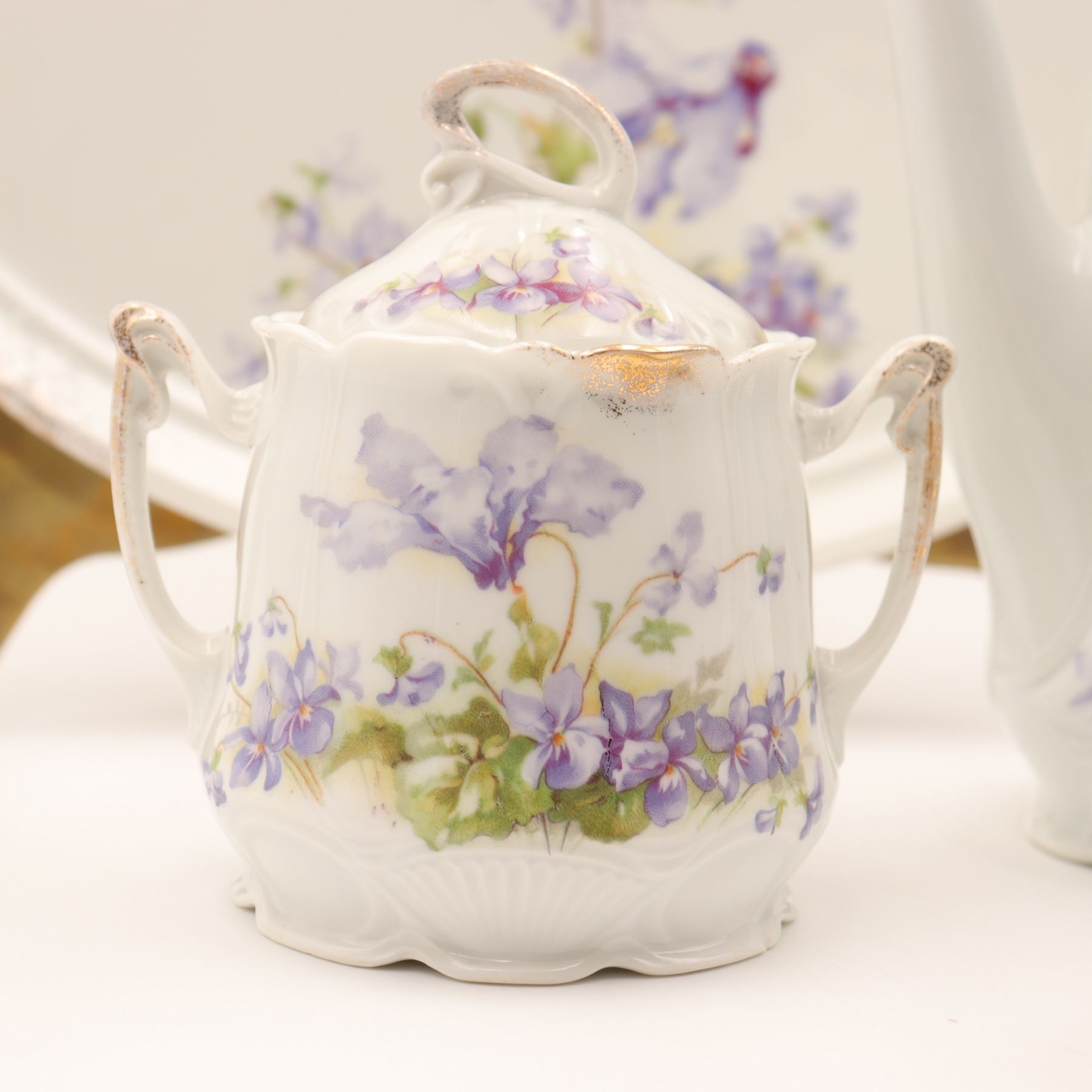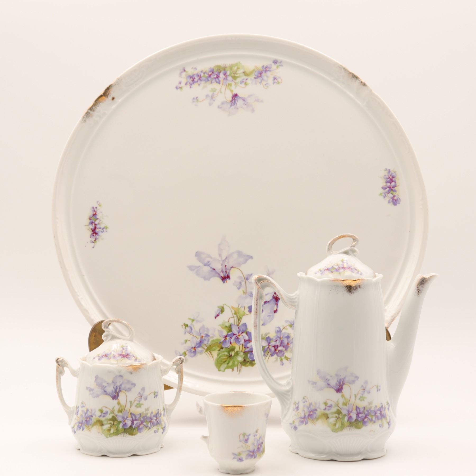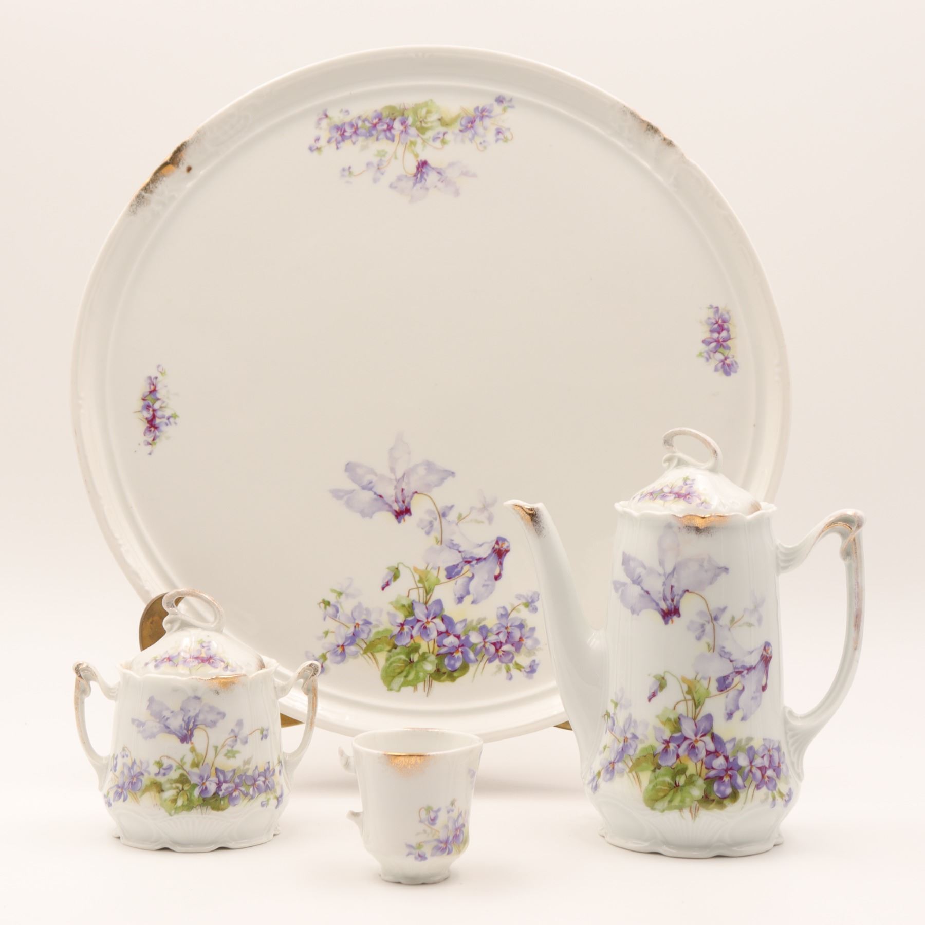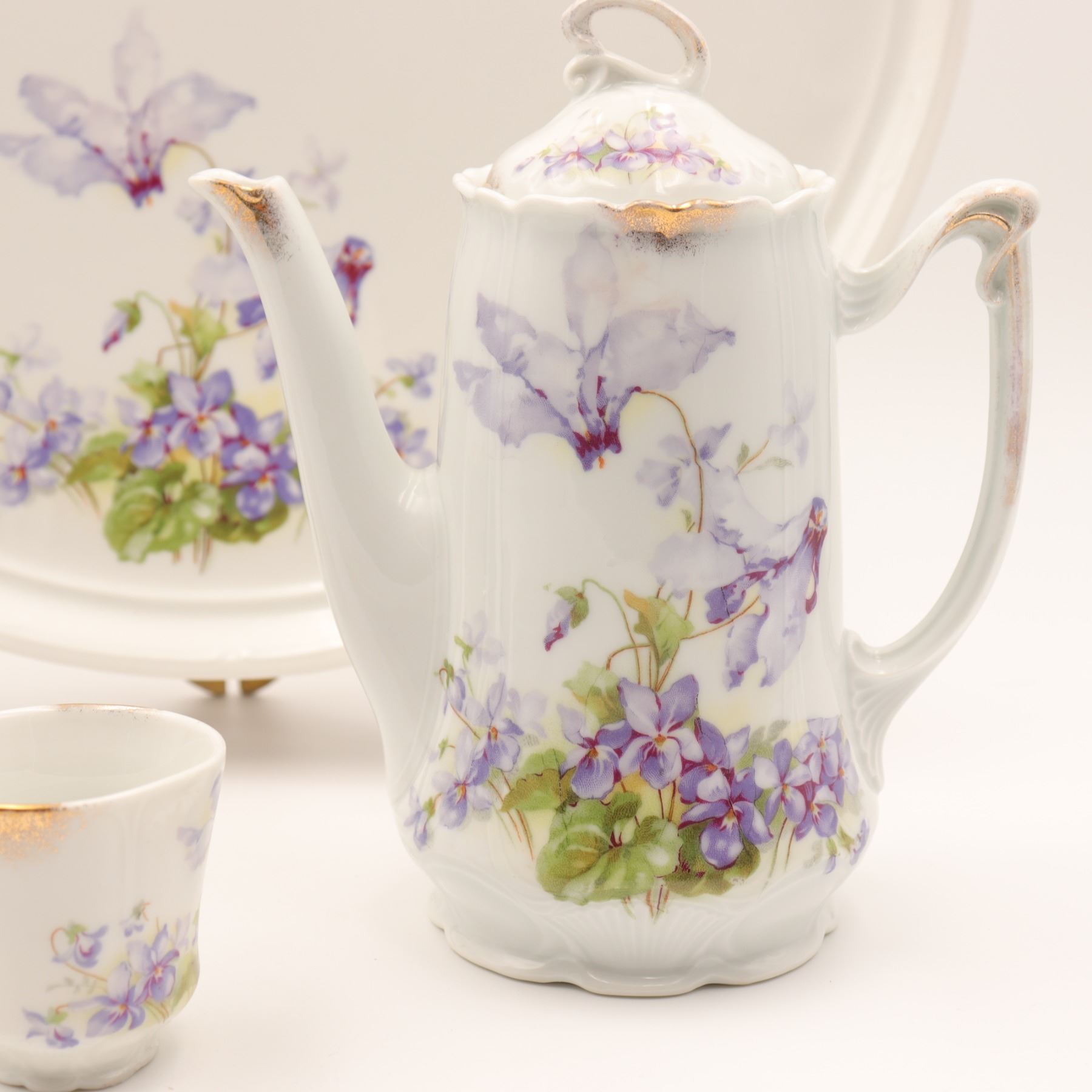 Lot 60 Art Nouveau Style Porcelain Coffee Service with Violet Floral Decoration