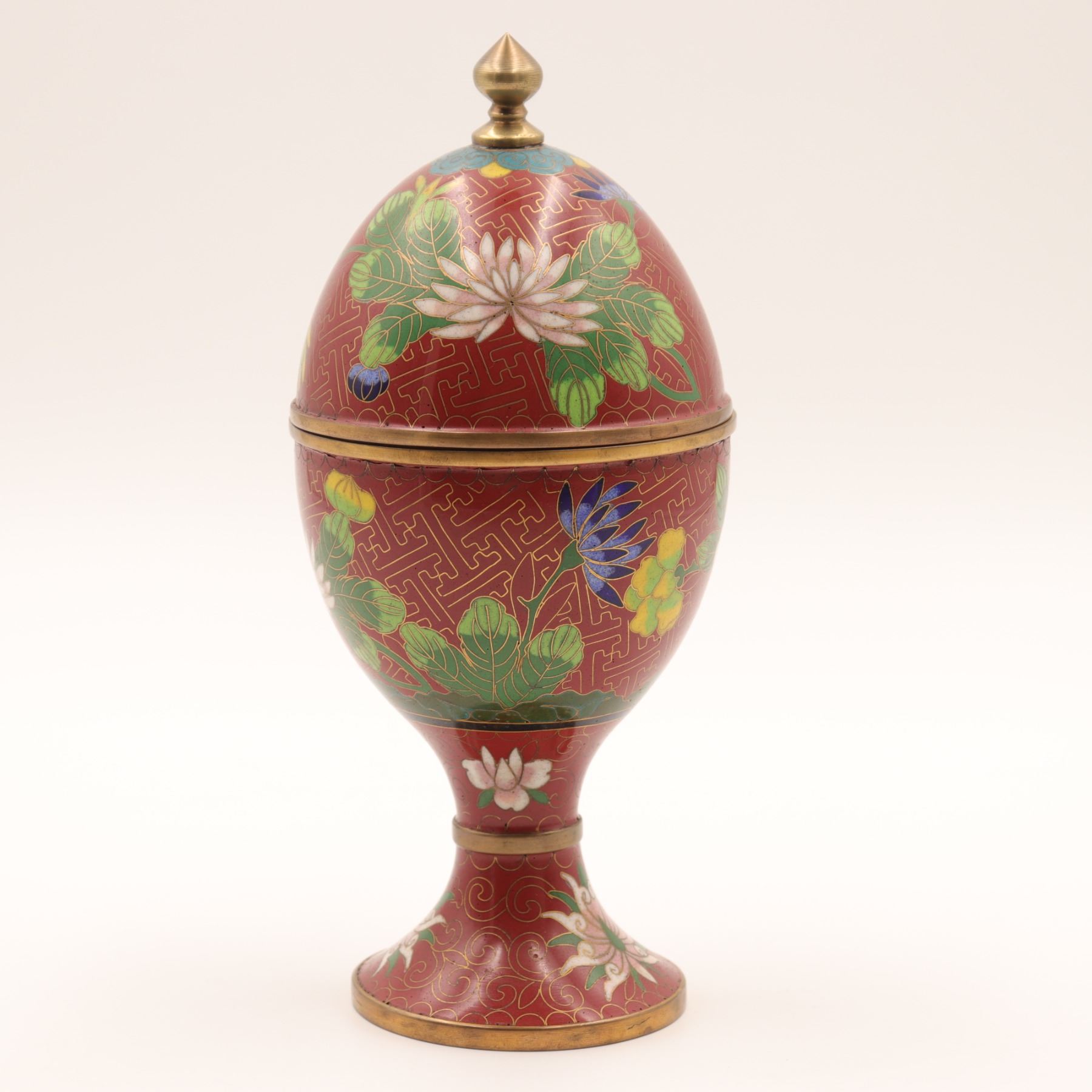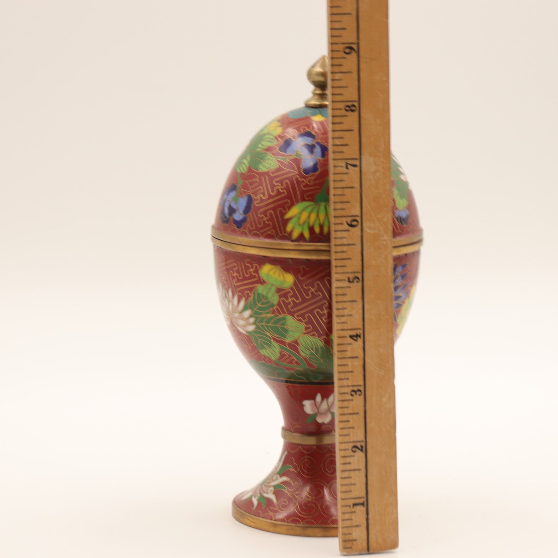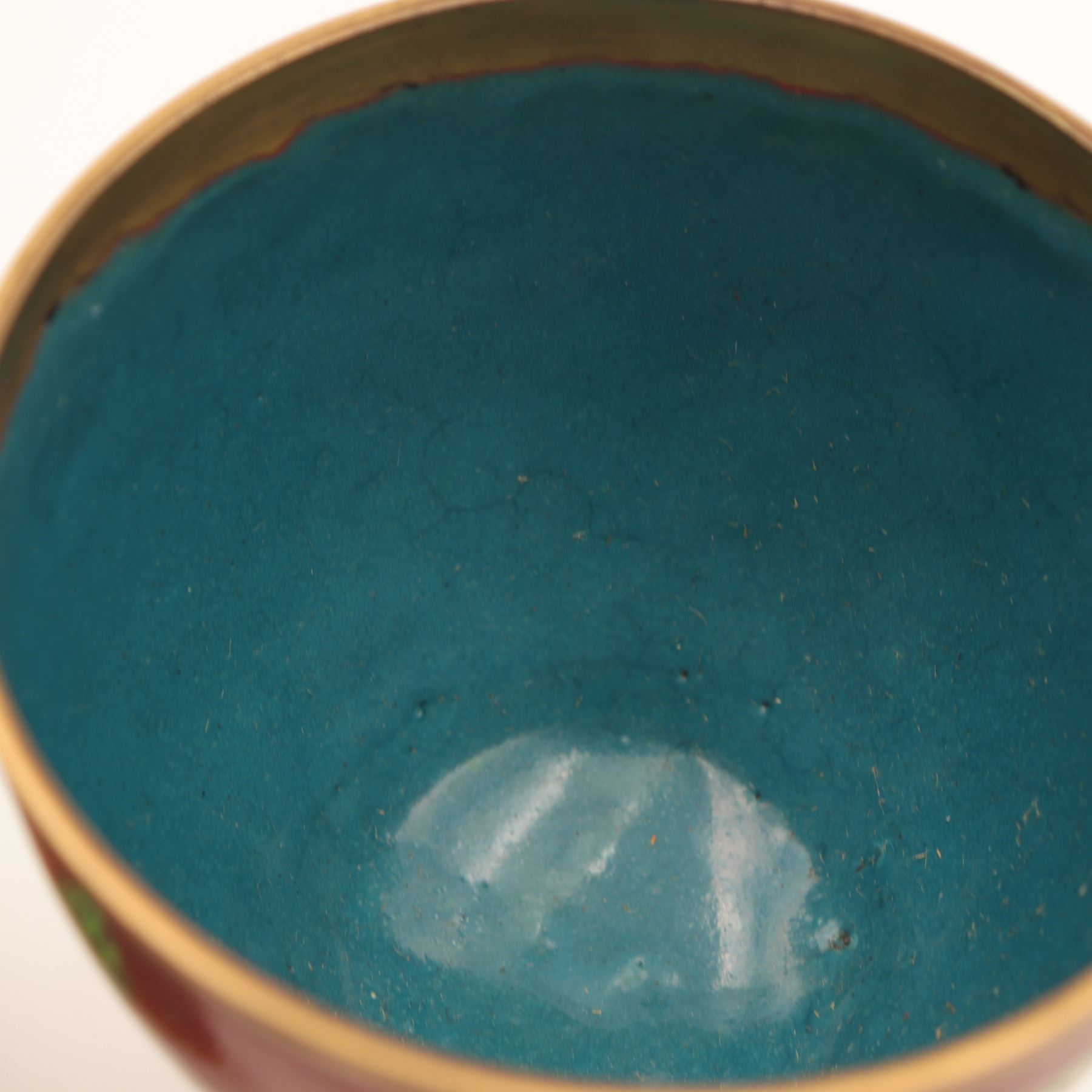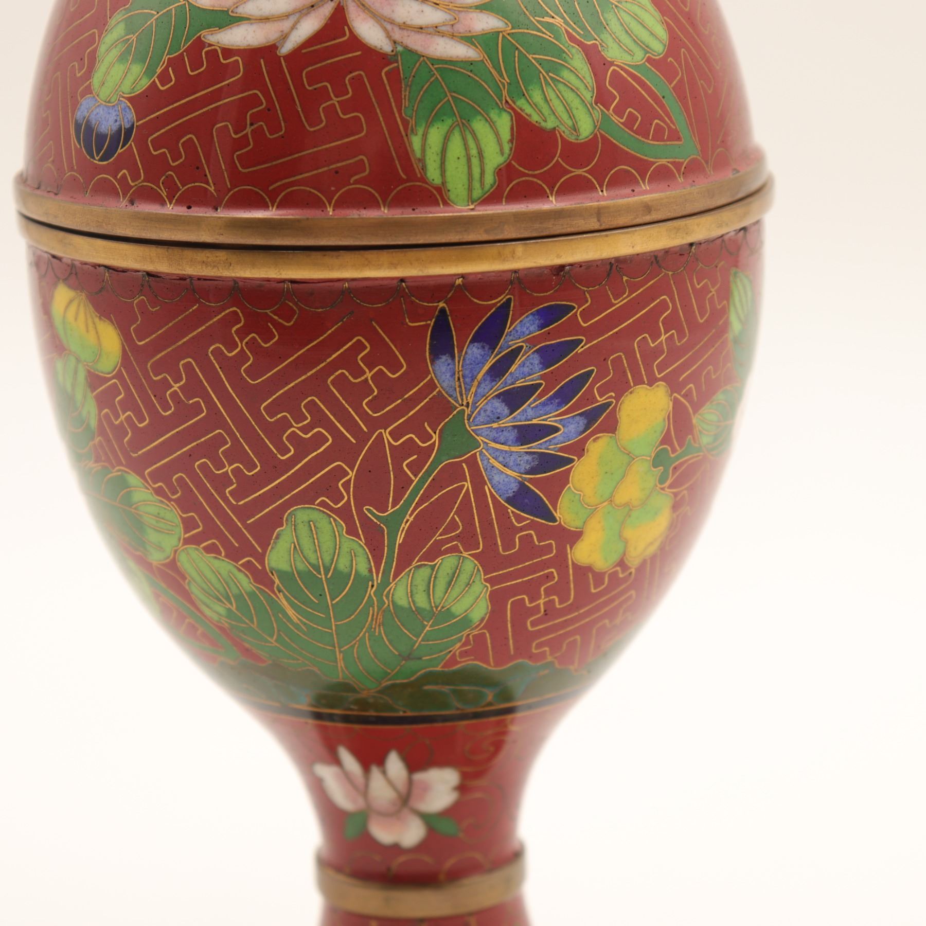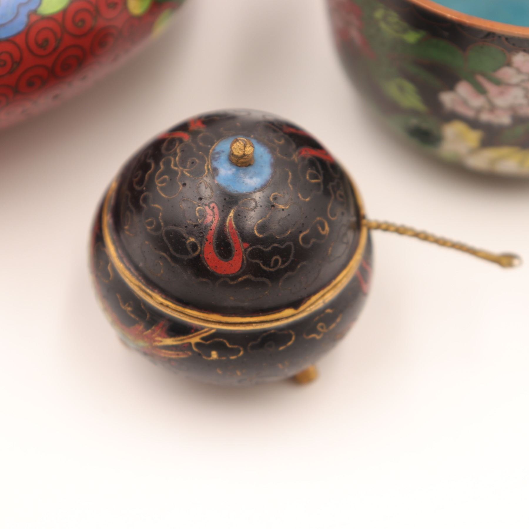 Lot 64 Chinese Cloisonné Group of 7, Egg on Stand, Covered Boxes, Bowls & Covered Salt