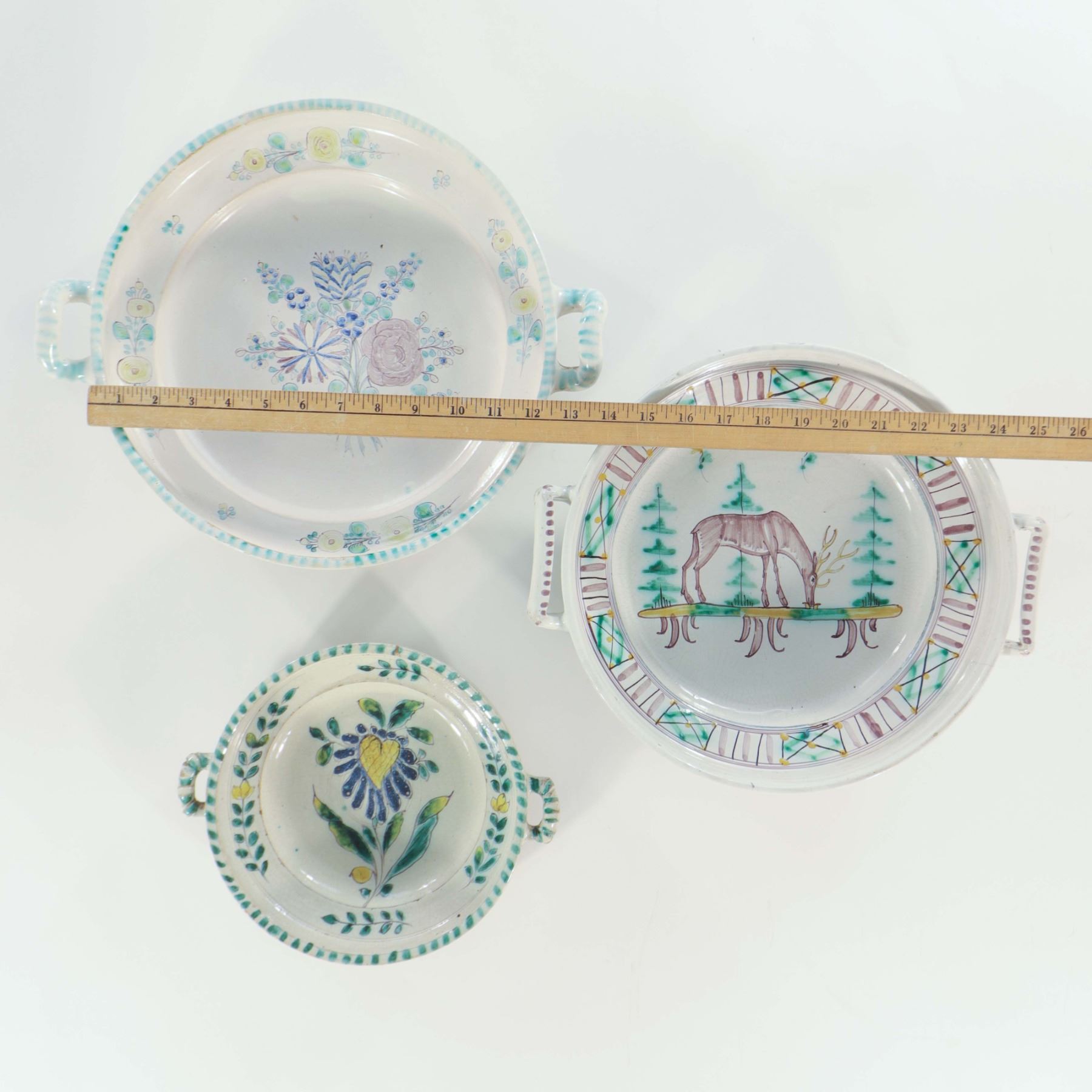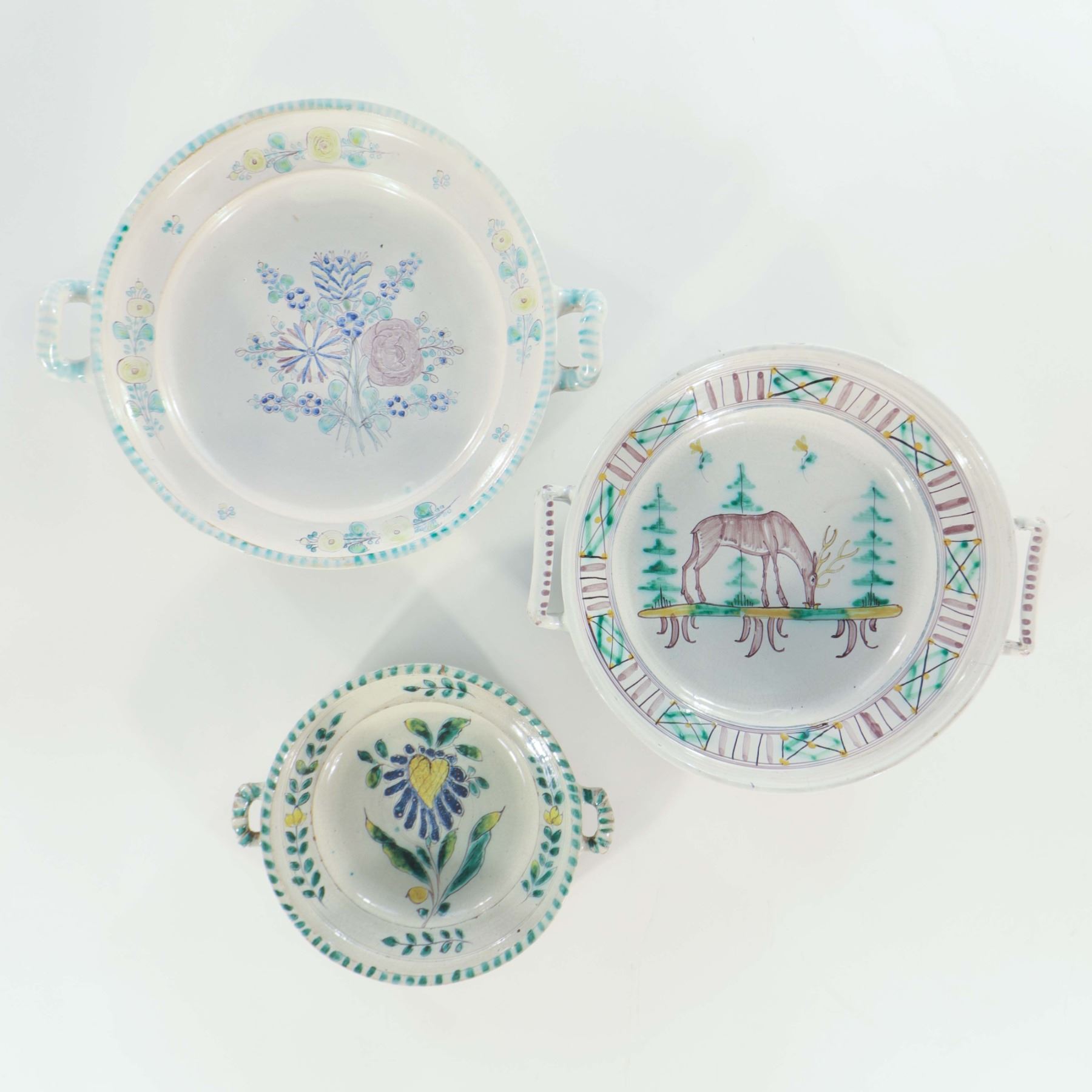 Lot 66 Three Continental Hand-Painted Earthenware Handled Dishes
