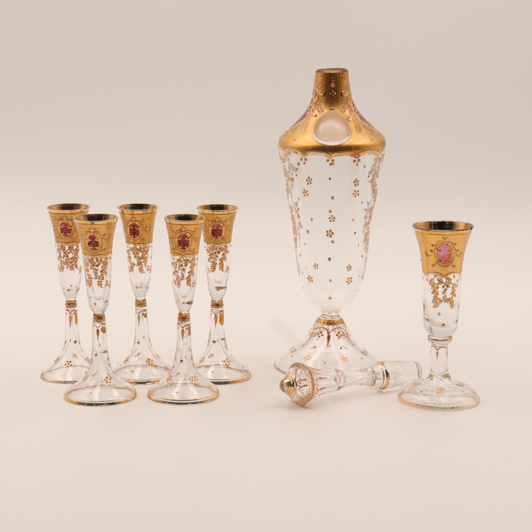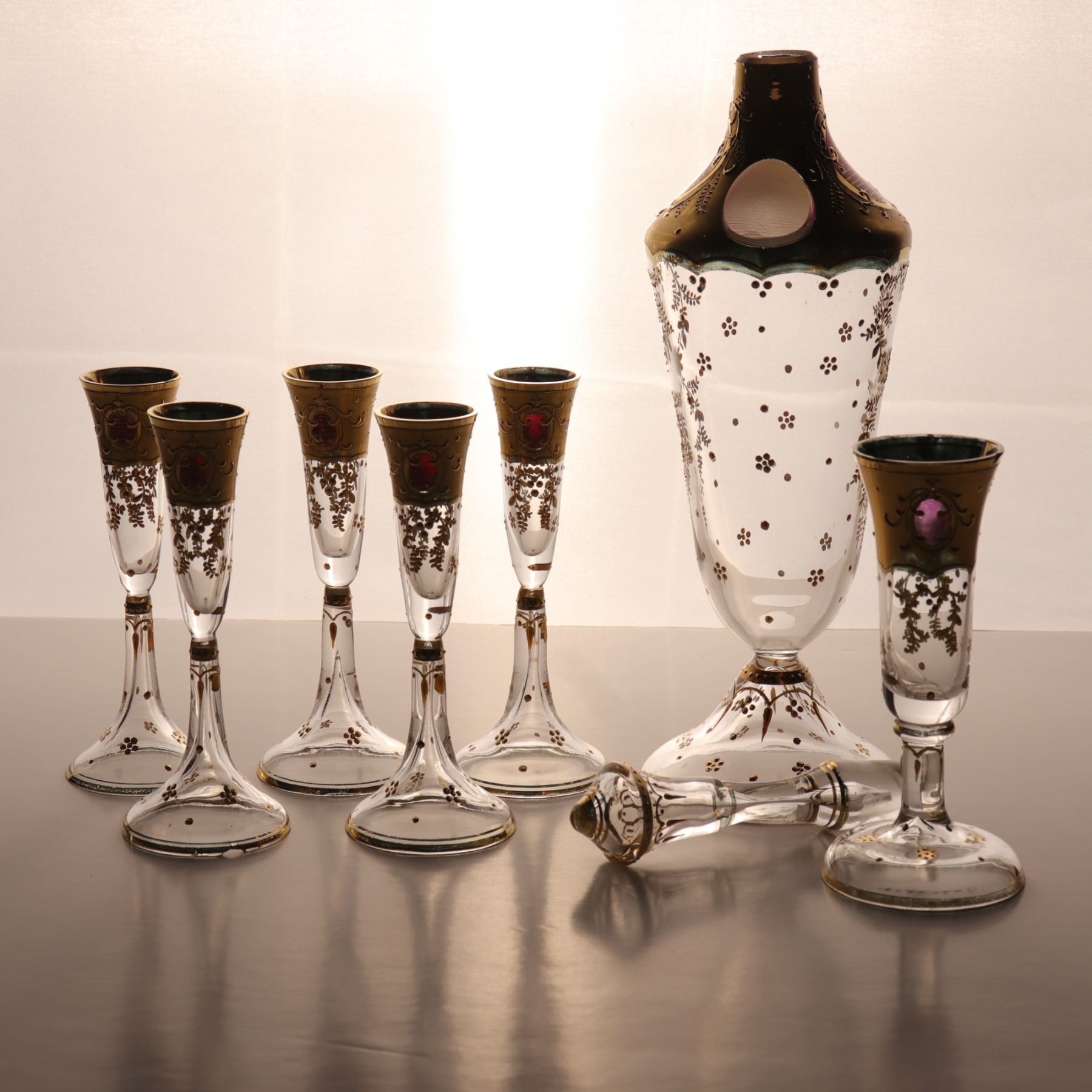 Lot 88 Gilt and Enamelled Glass Decanter with Six Cordial Glasses