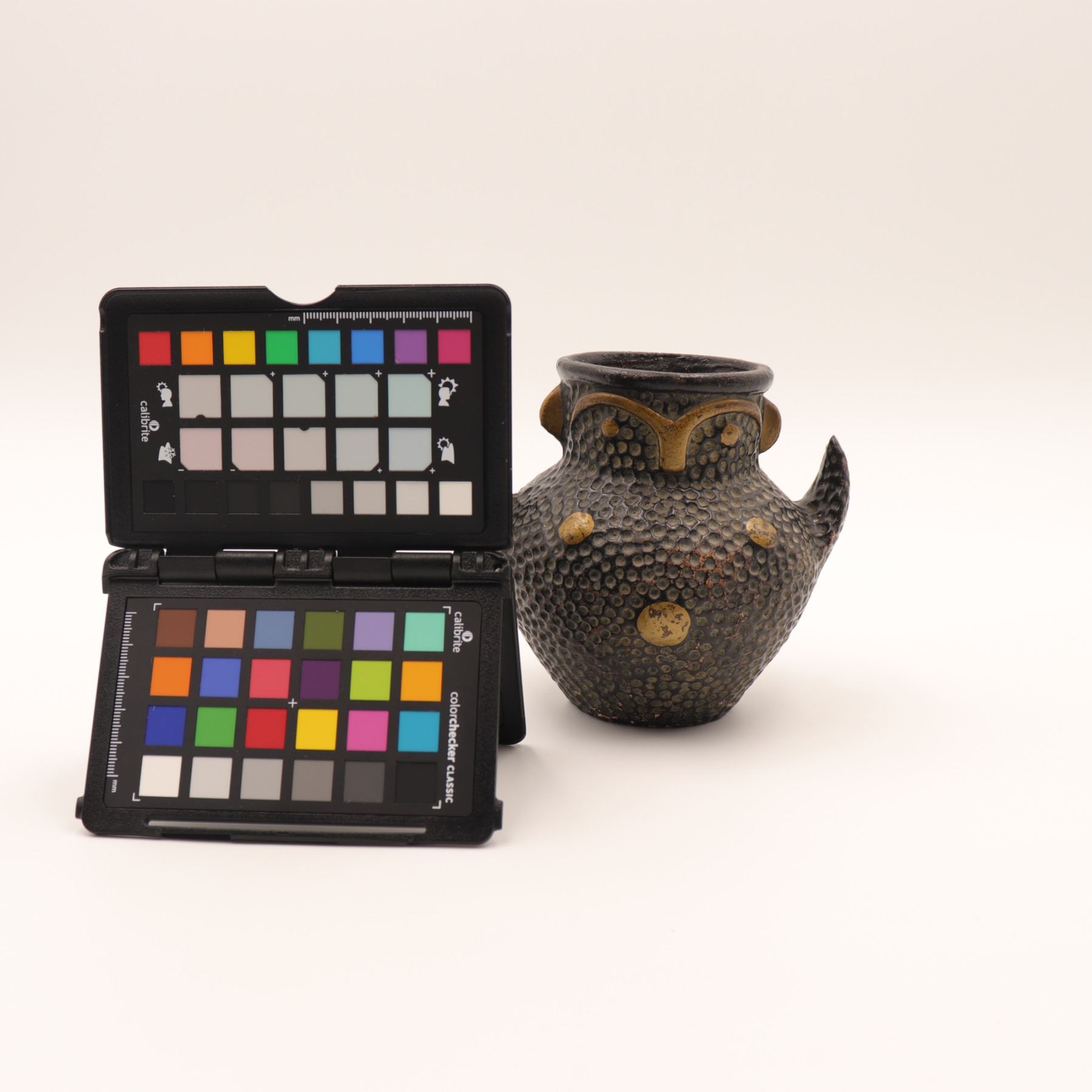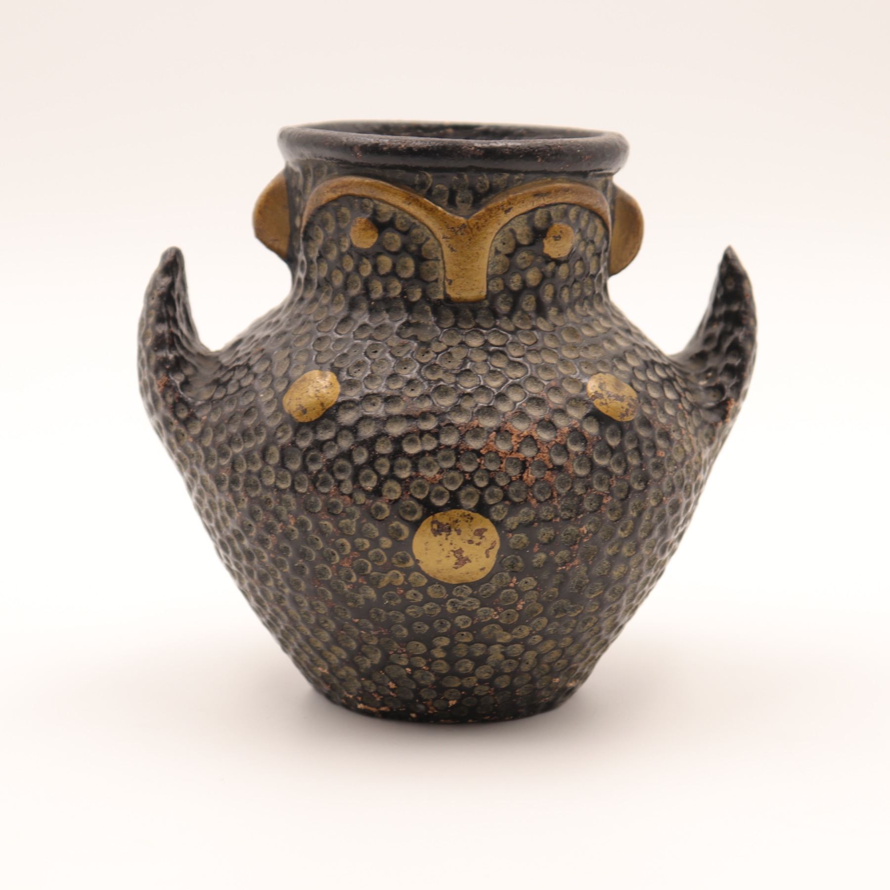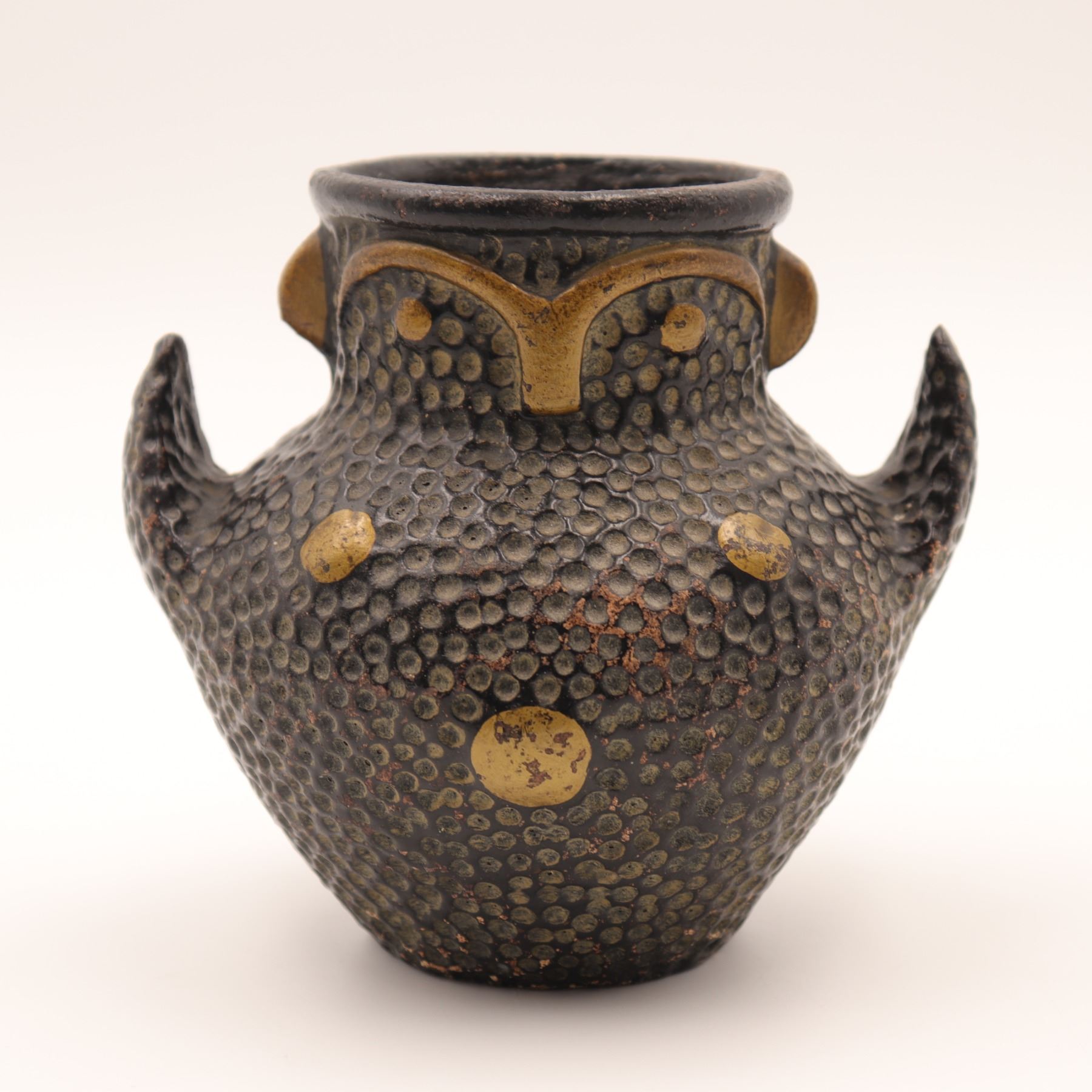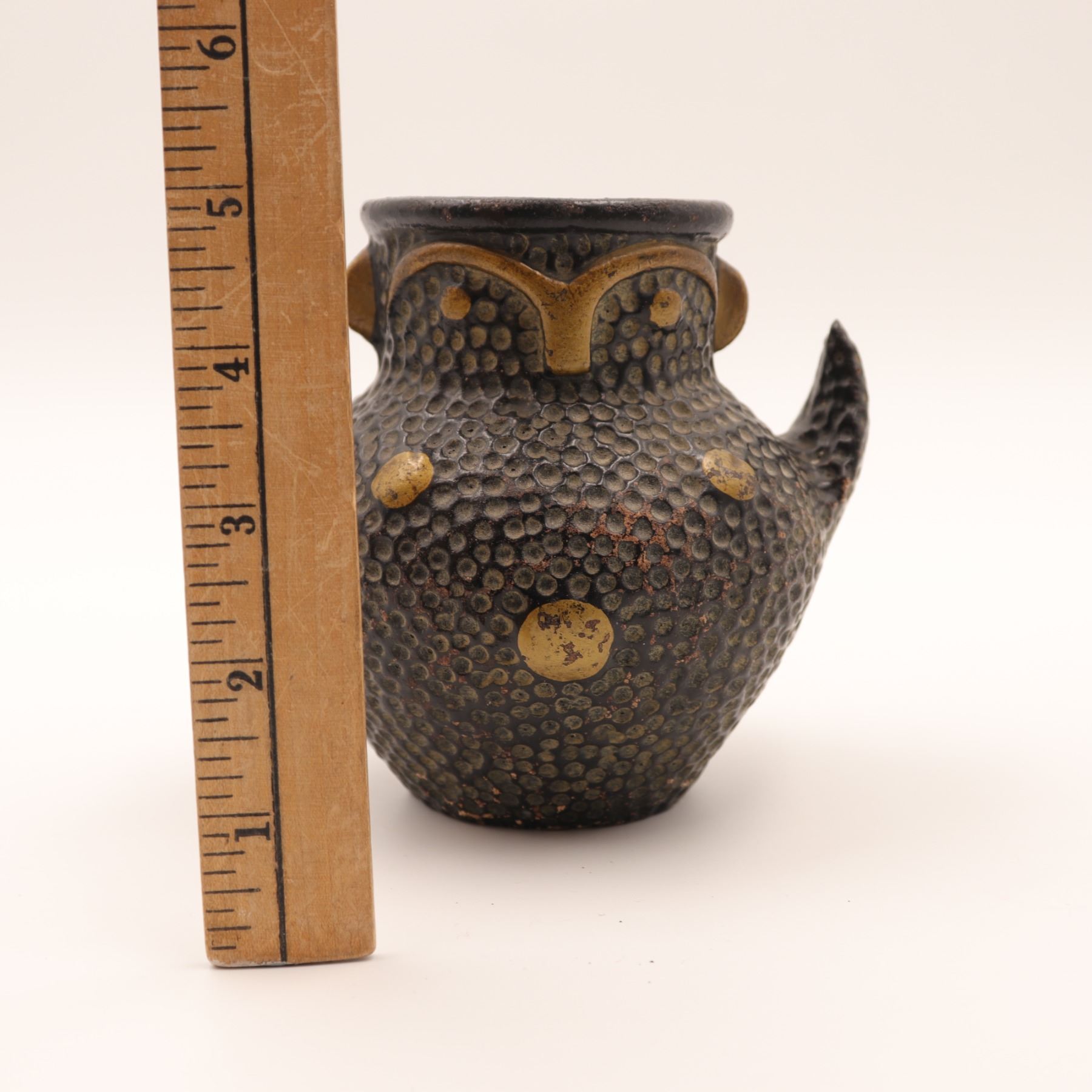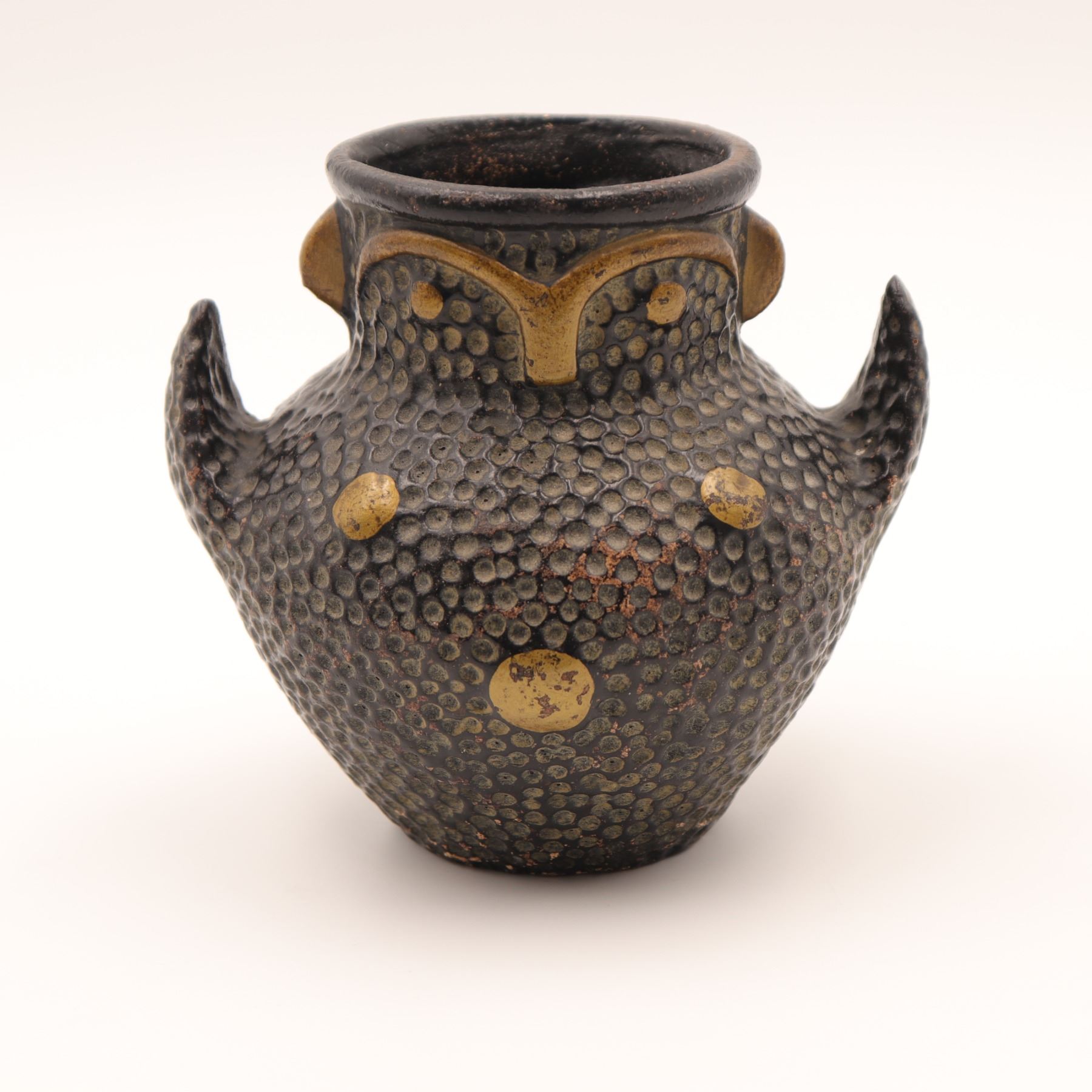 Lot 100 Group of Three Mid-Century Decorative Objects, Owl-Form Pottery Vase, Linton Ice Bucket, and Aynsley