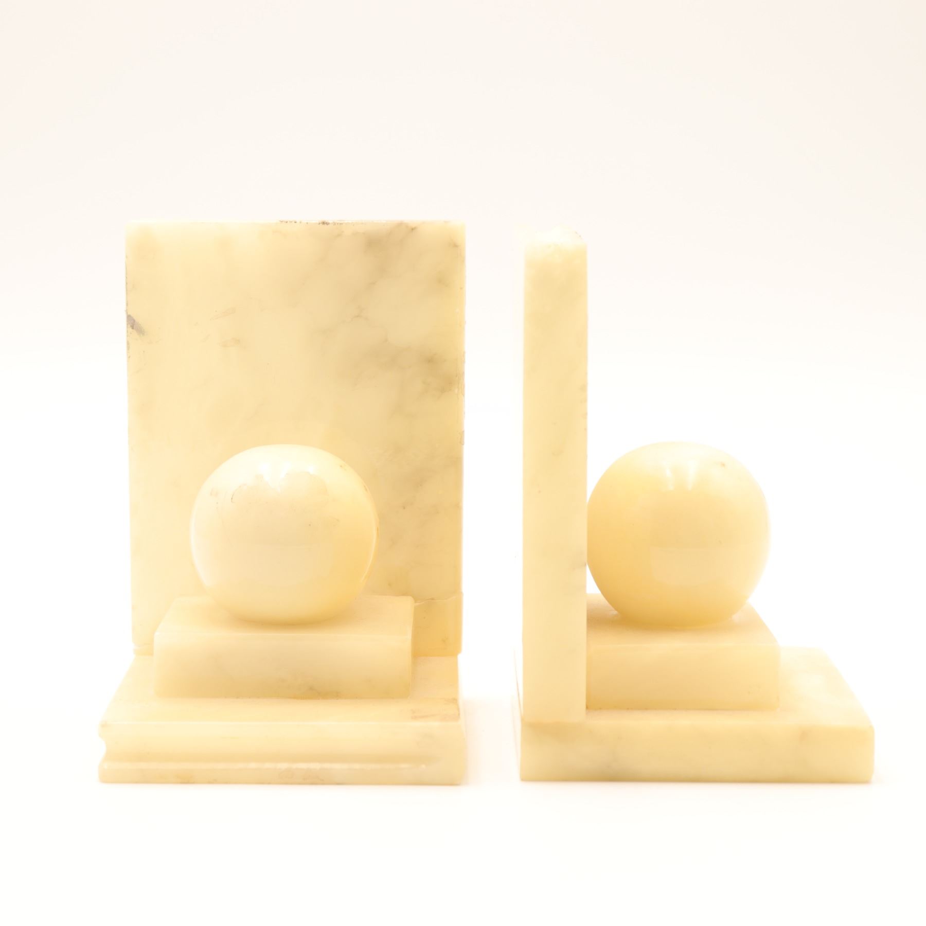 Lot 122 Pair of Cream Onyx Bookends with Spheres