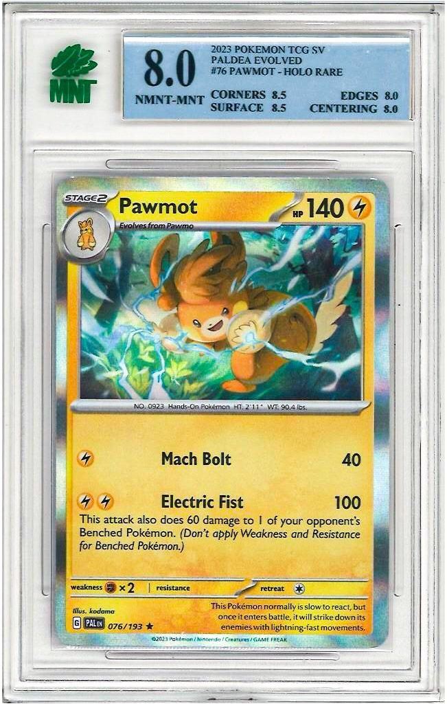 2023 Pawmot # 76 / 193 Pokemon Tcg Sv Paldea Evolved Card, Holo Rare With Grade NMNT-MNT 8 . Graded by: MNT Ð PK8088