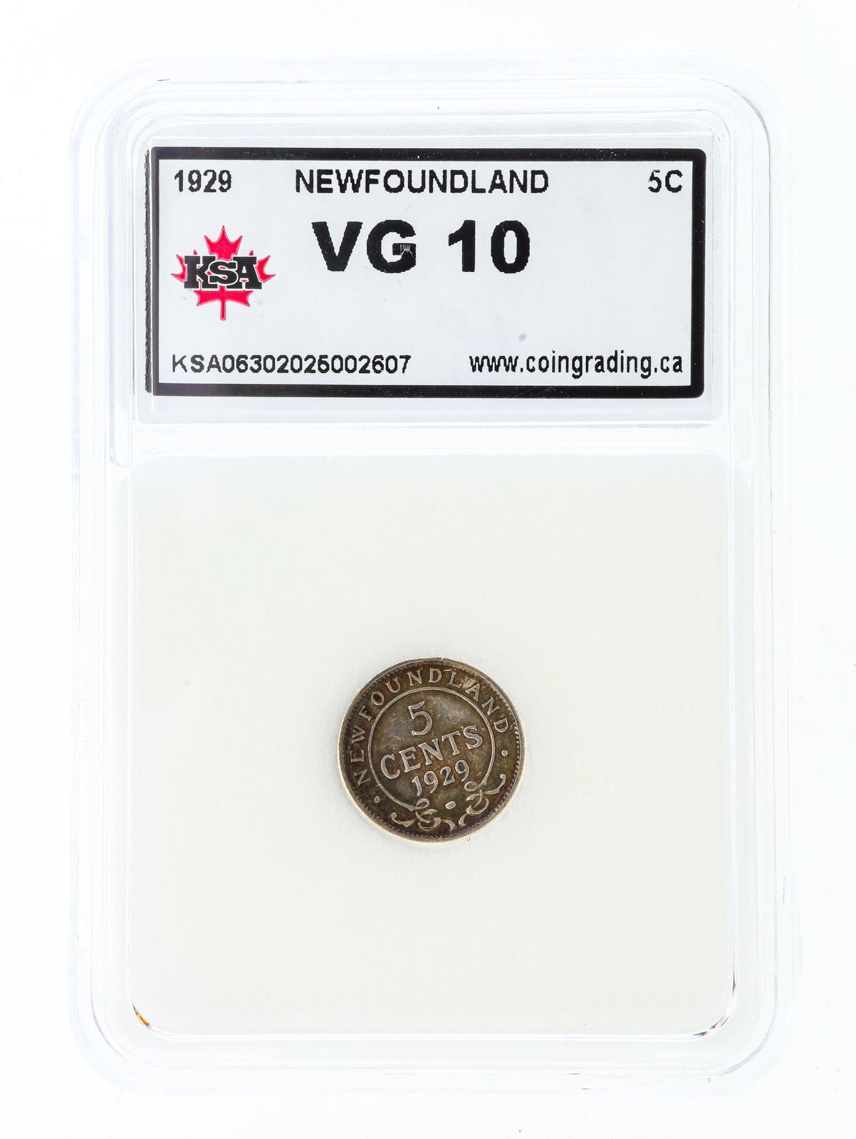 NFLD. 1929 Silver Ten Cents VG10 KSA Slab