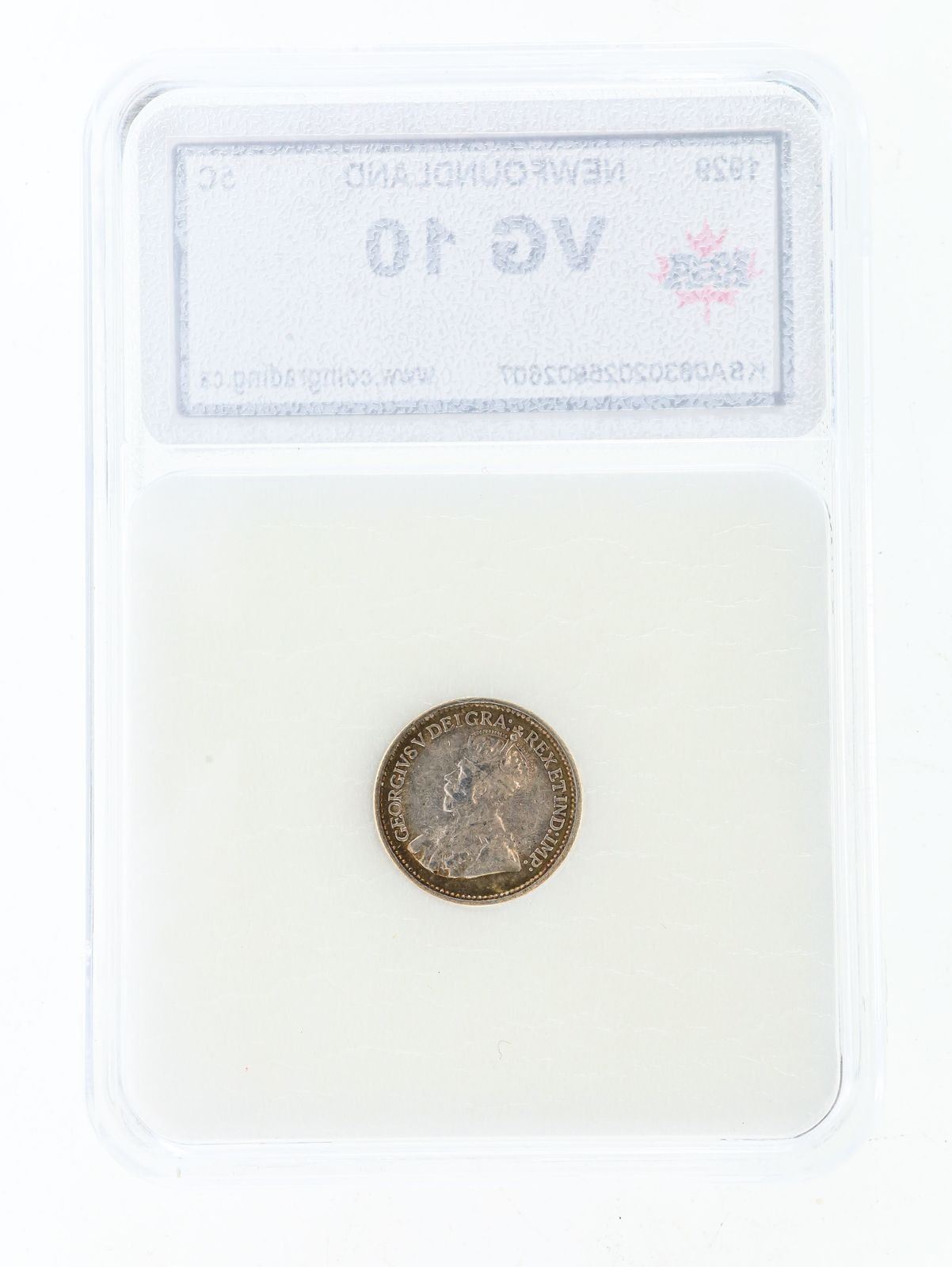 Lot 138 NFLD. 1929 Silver Ten Cents VG10 KSA Slab