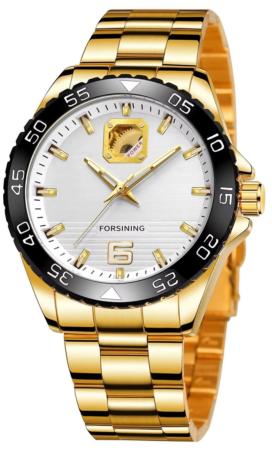FWTC Gent's Automatic Sport Watch Date/Skeleton Window, 18kt.G.P. Case & Bracelet - White Dial, Black Bezel Ð 2017