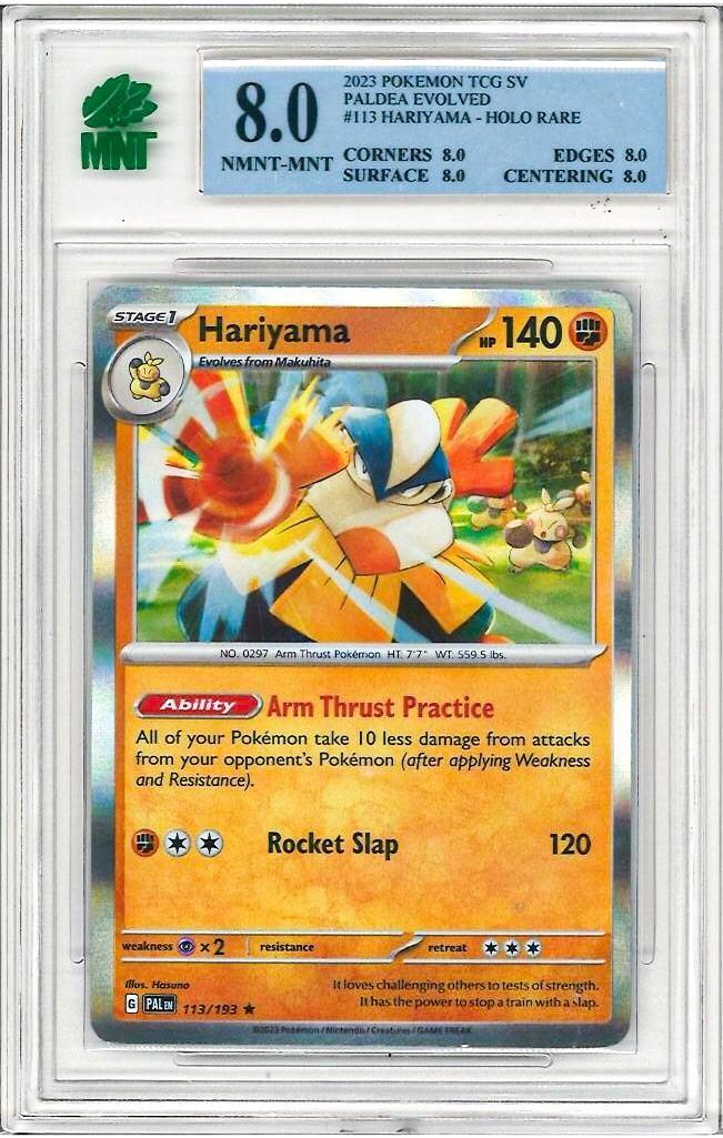 2023 Hariyama # 113 / 193 Pokemon Tcg Sv Paldea Evolved Card, Holo Rare With Grade NMNT-MNT 8 . Graded by: MNT Ð PK8087