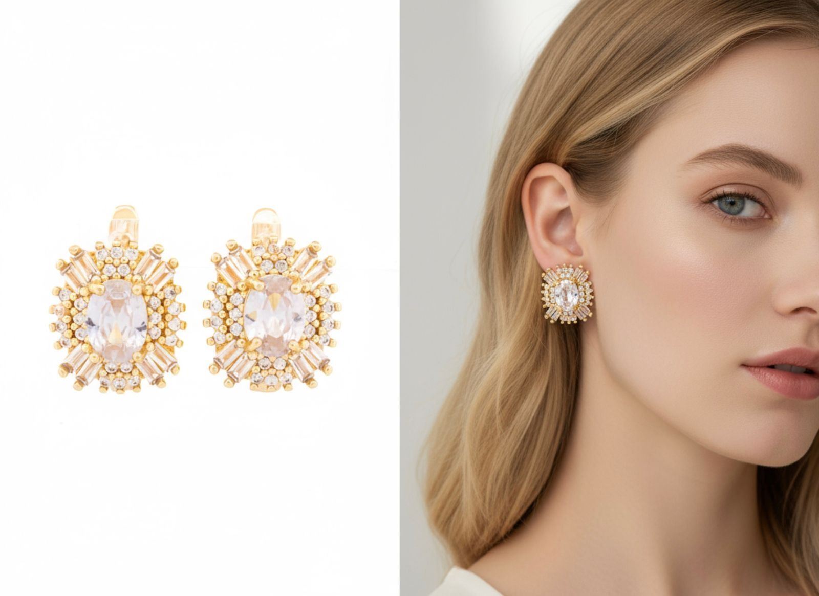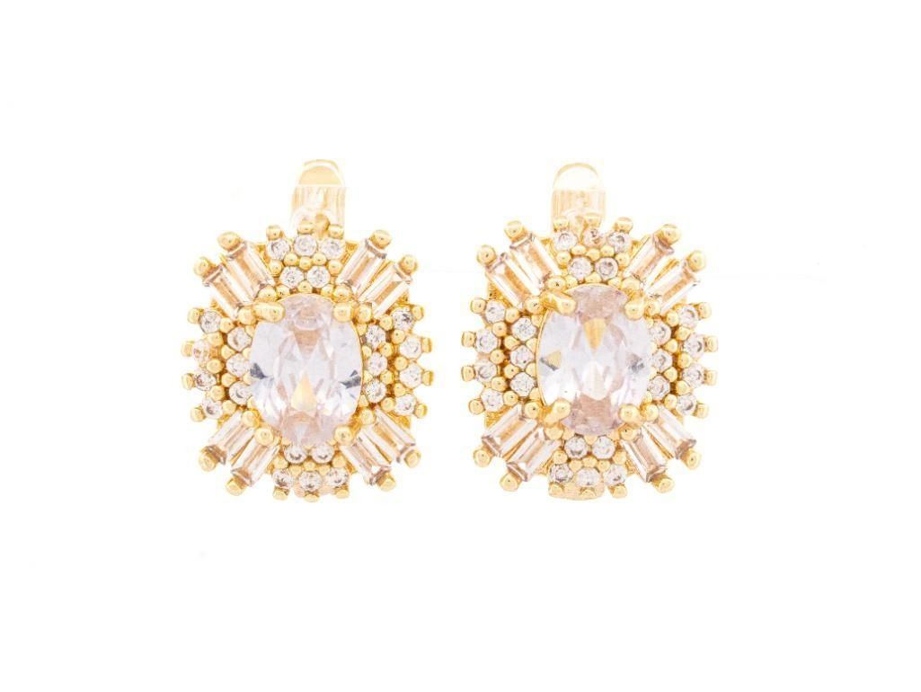18kt Oro LaminadoCluster Earrings w/ Baguettes White Gemstones Ð 2026