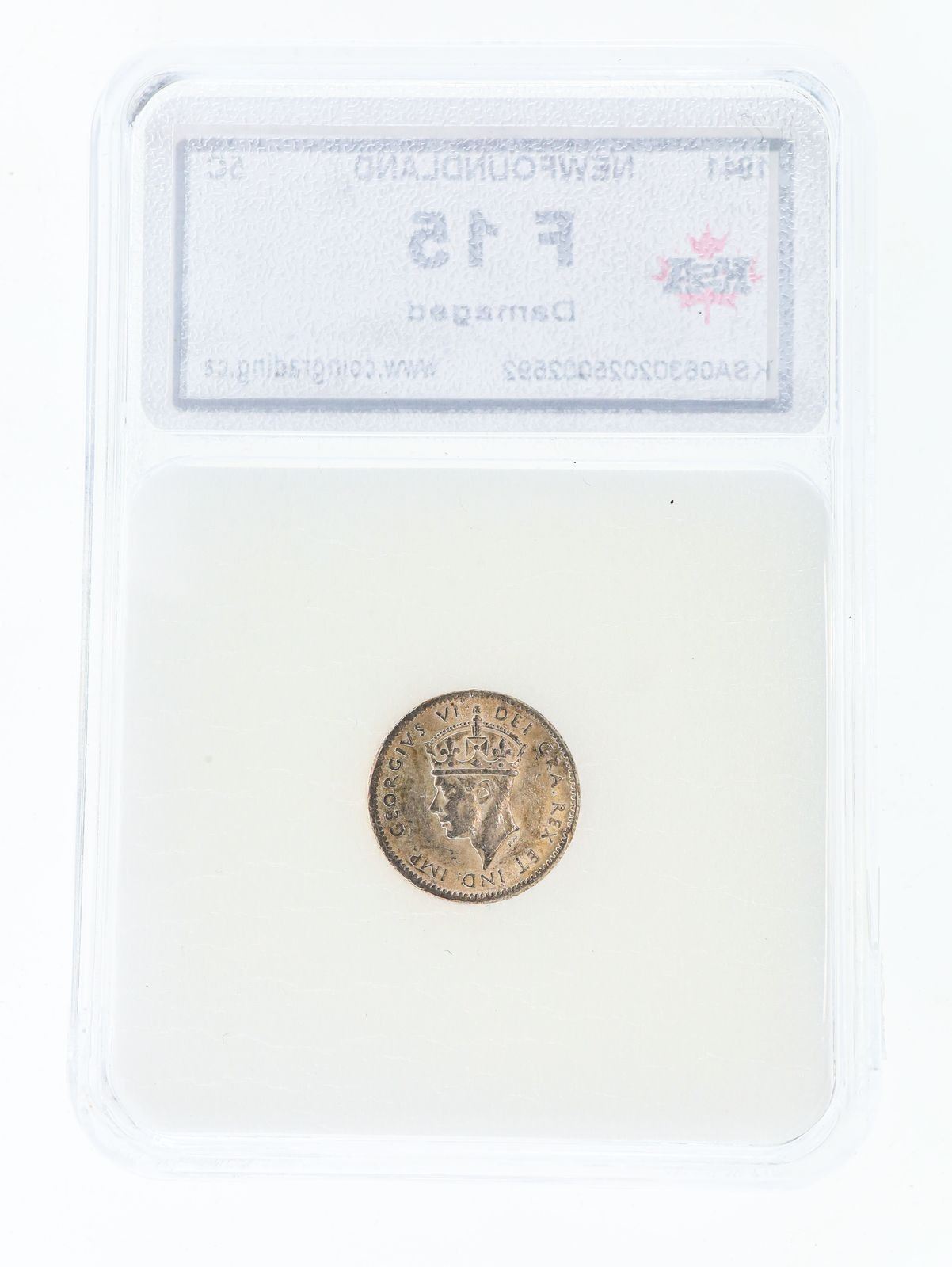 Lot 317 1941 NFLD Silver Five Cents Damaged F15 KSA Slab