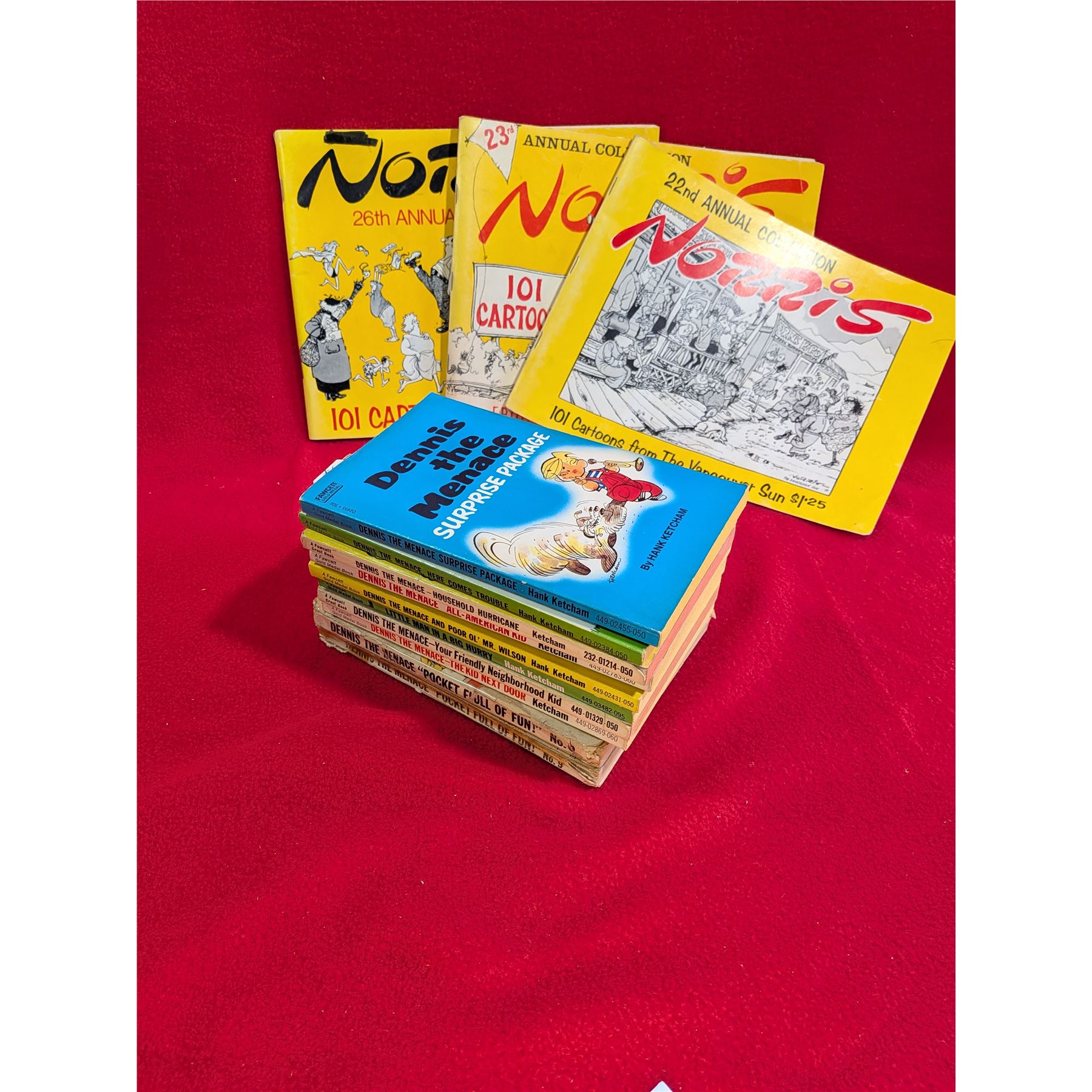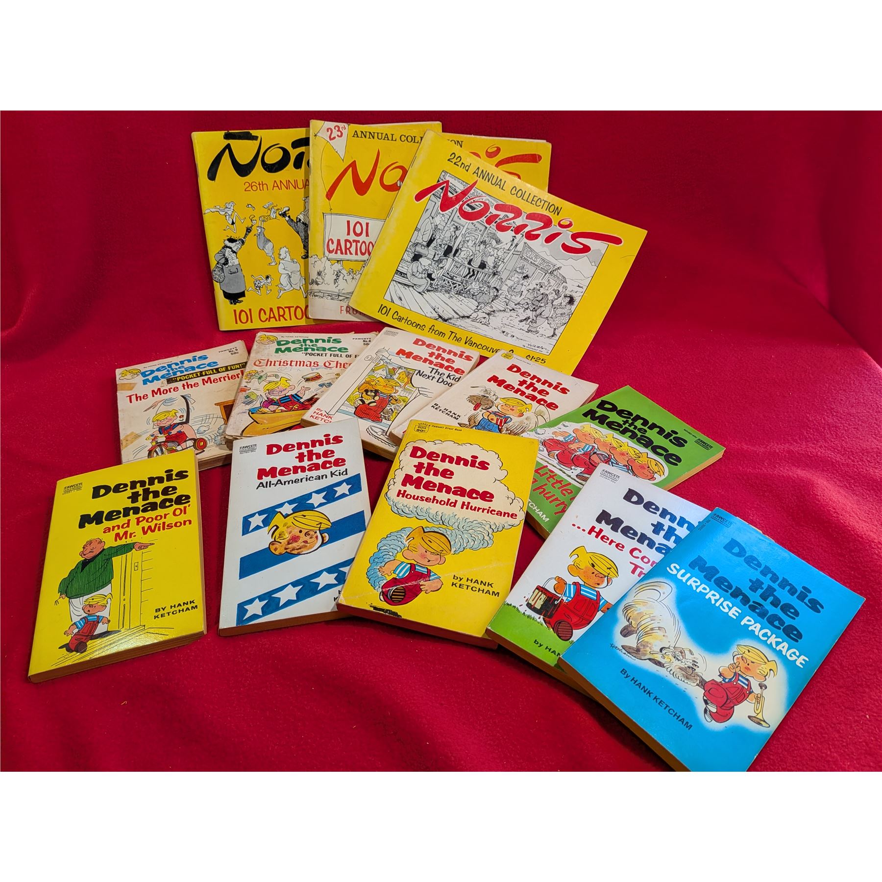 Vintage Norris Cartoons (3) and 10 x Dennis the Menace pocket books