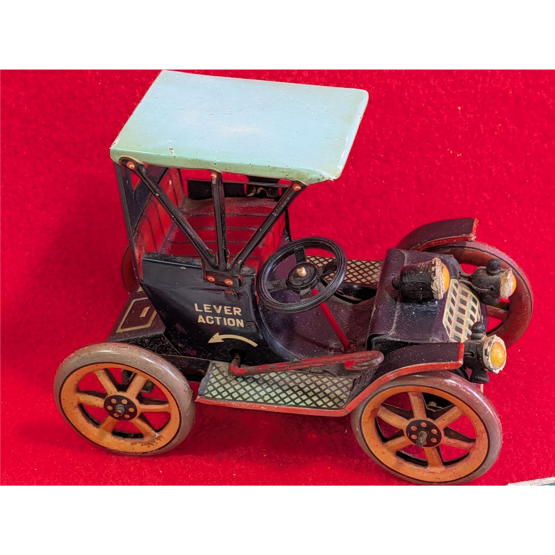 1922 SASKATCHEWAN LICENSE PLATE TAG & Vintage Friction Car by MODERN TOYS Japan