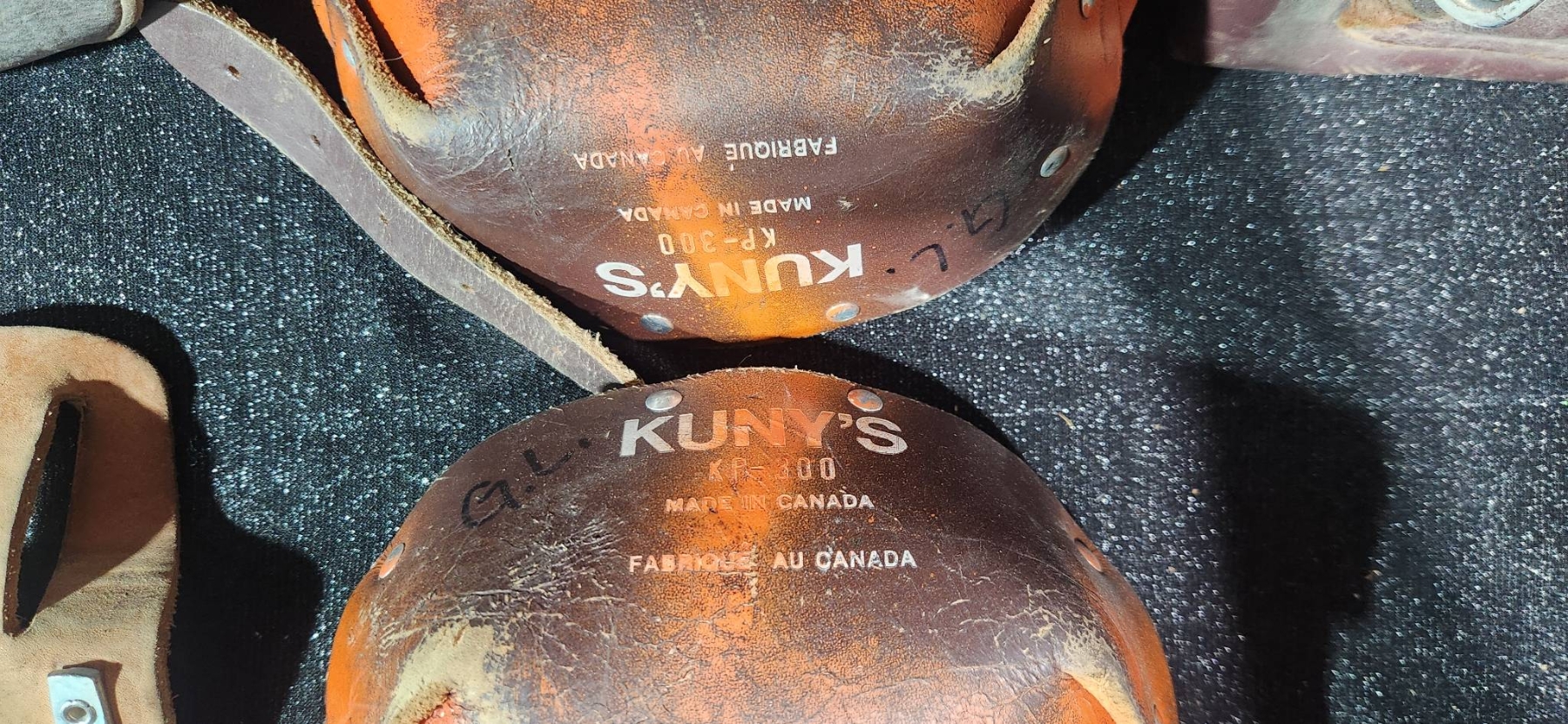 Lot 12 Old Leather Work Pouches with Vintage Kunys Knee Pads