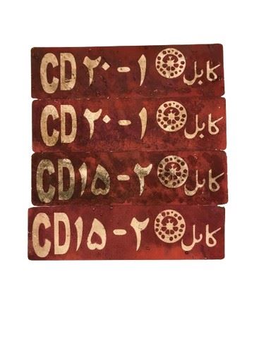 The KIte Runner - Screen used, two pairs (4 pieces) of lightweight metal Afghanistan 1970 diplomatic license plates. 17”x5”.