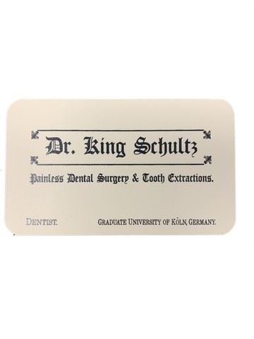 Dr. King Schultz (Christoph Waltz) "Painless Dental Surgery & Tooth Extractions" business card. (approx. 3 3/4" x 2 1/4")
