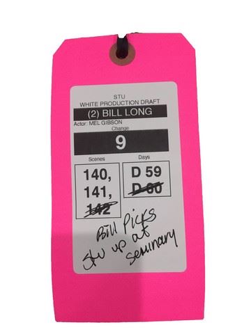 Bill Long (Mel Gibson) screen worn, ocean blue, "Wrangler" , snap front western shirt (xl), "Hanes", white u-tank (L), camel colored, "Wrangler" jeans and taupe, "Red Wing" work boots (aged with yellow laces) (sz 12). Includes wardrobe tag. From the scene where Bill picks up Stu at the seminary.