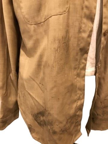 Adaptation. (2002) - Susan Orlean (Meryl Streep) screen worn, tan/khaki colored distressed button up, long sleeve shirt with a creme colored, cropped, Jockey v neck t shirt (s).