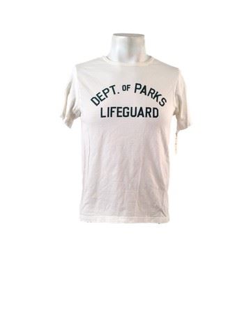 Mickey (Justin Timberlake) screen worn, hero, cream colored, " Dept of Parks Lifeguard" short sleeve t-shirt with green font.Wardrobe tag included.