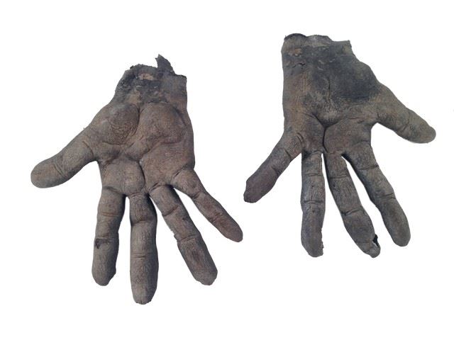 Screen used pair of lycan gloves made of latex (approx. 11"x10" each)