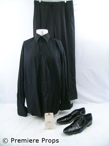 Floyd's (Bernie Mac) black cotton "Ike Behar" l/s button up shirt (*Bernie written inside / made to order), black wool w/ self stripe down sides "Zanella" trousers (size 38), black patent leather "Ferragamo" lace up shoes (size 13) (includes wardrobe tag / screen worn)