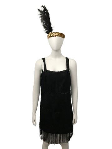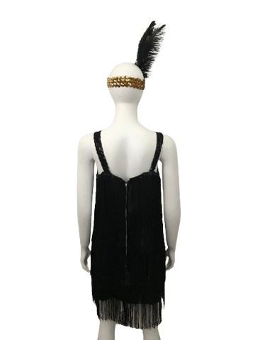 Vintage, black flapper dress with four tiers of fringe. Back zipper. Made by Rubies costumes. Very good quality. Was made for one of the oldest and largest costume stores in Los Angeles that has been in business for over 75 years. Has been used in several photo shoots and productions over time.