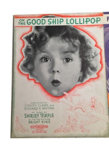 Shirley Temple Sheet Music: Dimples (1936), On The Good Ship Lollipop (1934), Picture Me Without You, set of two. (12x9)