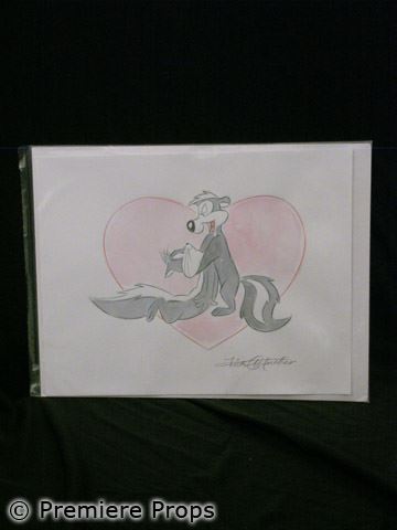 Lot 389 Original Pepe Lepew & Kitty Mix Media Watercolor Signed