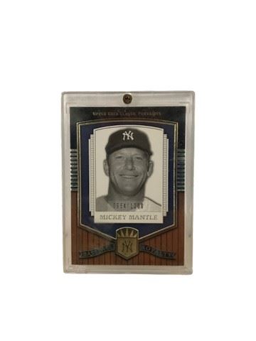 Mickey Mantle Upper Deck Classic Portraits Baseball Royalty card, displayed in this plastic and sealed by a screw. Numbered 0954/1200 in gold foil. With Upper Deck's hologram on the back. (2003)