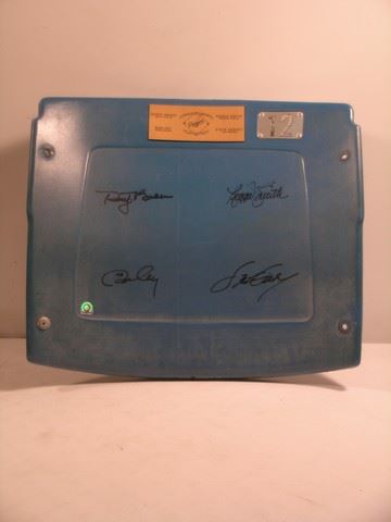 Dodgers Record Setting 30 Homeruns Limited Edition plastic chair back with a plaque on the front and signed by Dusty Baker, Reggie Smith, Ron Cey, and Steve Garvey. Includes the seat number 12. Purchased directly from Dodger Stadium and there are no others available like this with the signatures and seat number available for sale. (approx. 19 1/2" x 17)