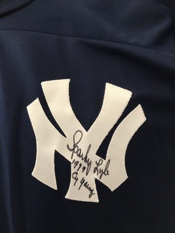 Lot 564 Sparky Lyle 1977 and Cy Young autographed Yankees Jersey