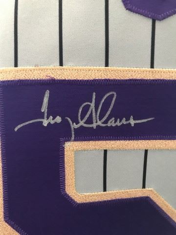 Troy Glaus #25 signed Arizona Diamondbacks jersey. Majestic gray and black pinstriped(XX).