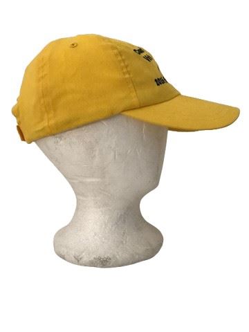 Coach Val’s Mad Hatter celebrates 2016 PAC 12 champions yellow baseball cap with embroidered lettering. Signed by Miss Val and others.