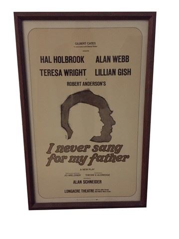 "I Never Sang For My Father" original theatre window card. Framed in glass with wood frame. Numbered 1 / 2056 on the back (24"x15").