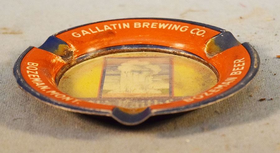 Old Faithful Beer" advertising ash tray, marked Gallatin Brewing Co., Bozeman, MT