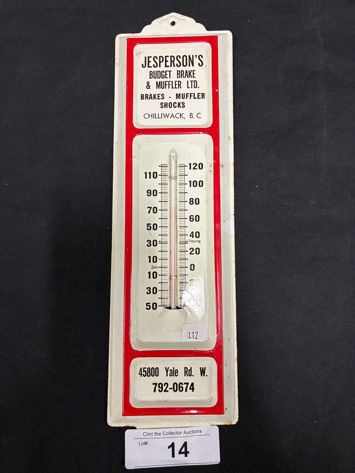 Lot 14 Vintage metal Jesperson's Break and Muffler shop Thermometer, 13"