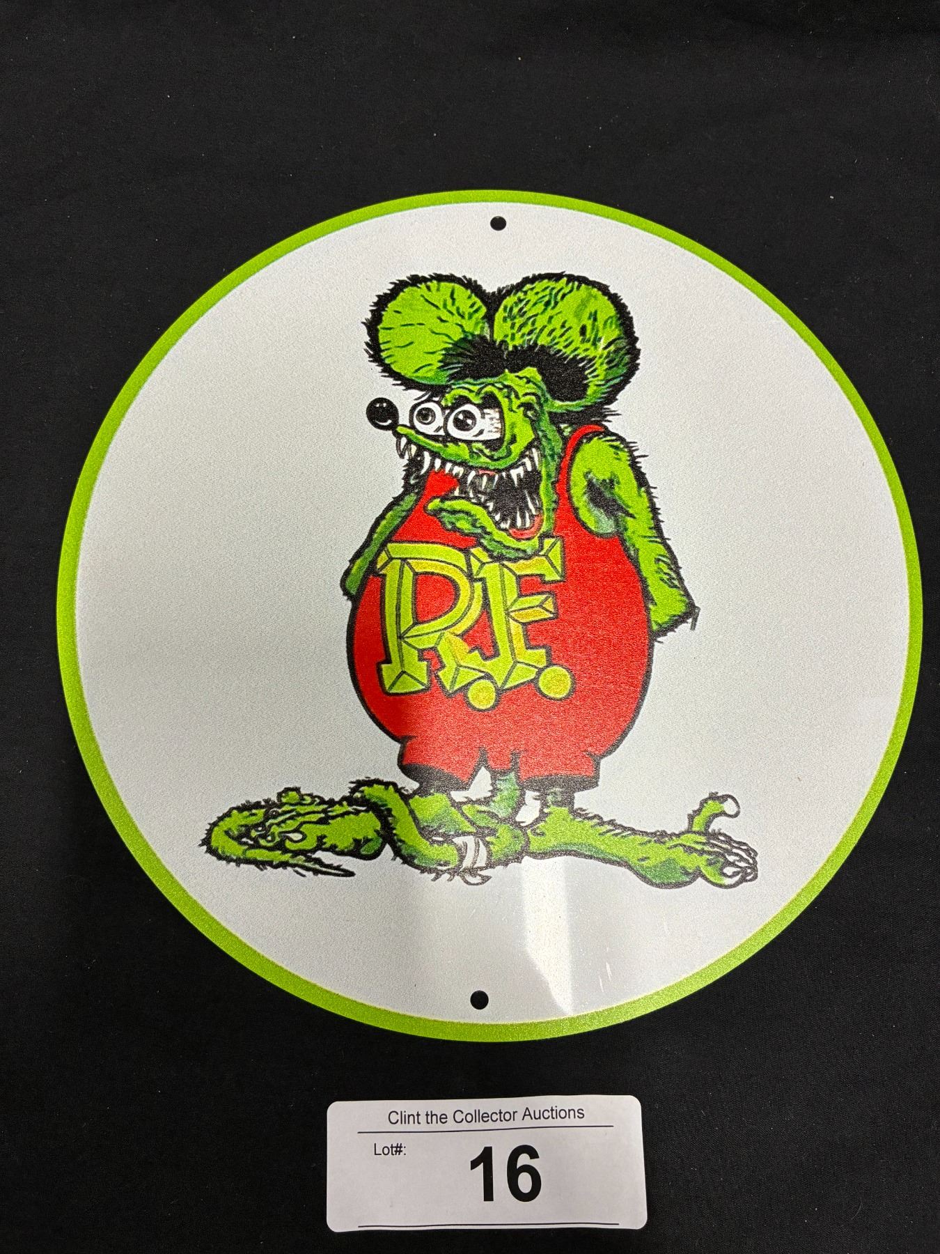 Lot 16 Rat Fink Metal sign, 8" Di