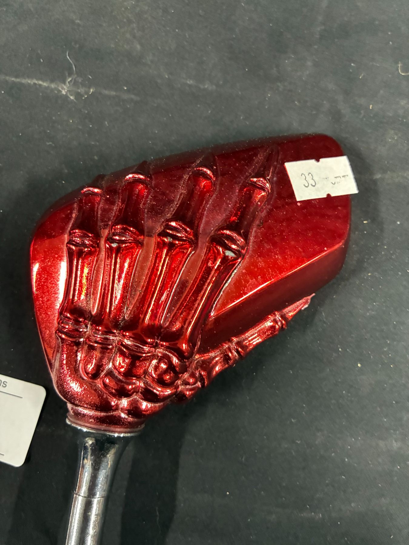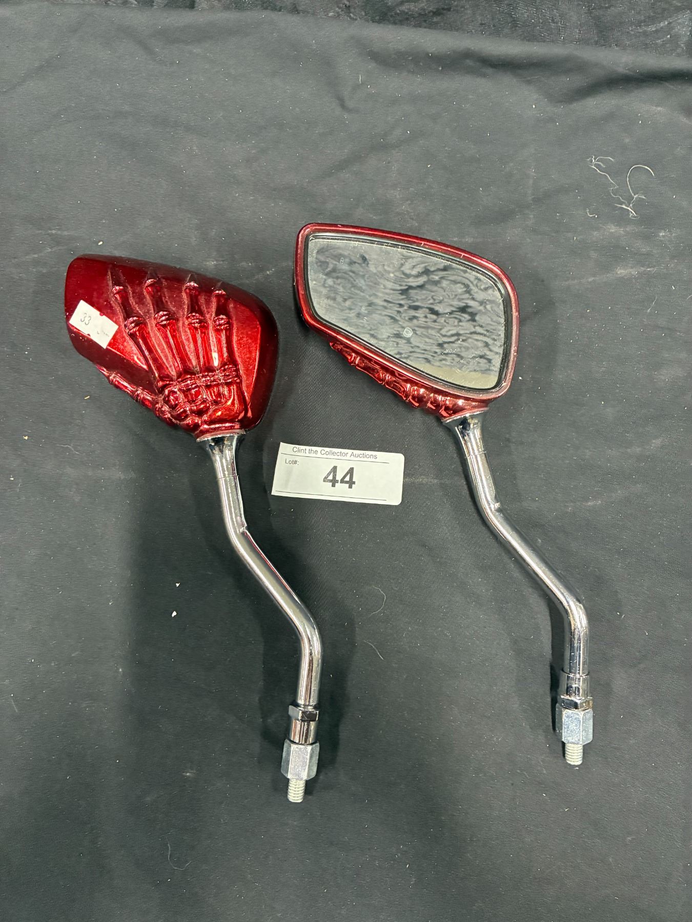 Lot 44 Pair of unique chopper mirrors, red anodized skeleton hand design