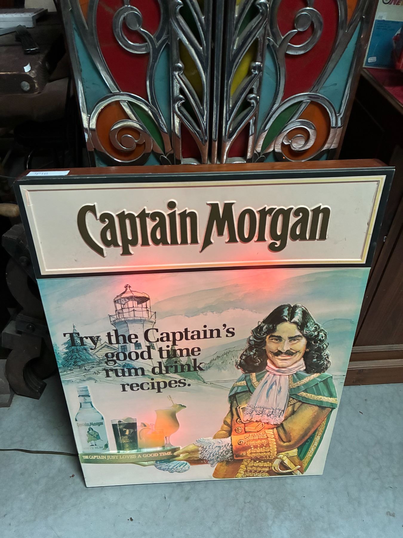 Lot 44B Vintage Captain Morgan Light Up Sign, Works, 33"x24