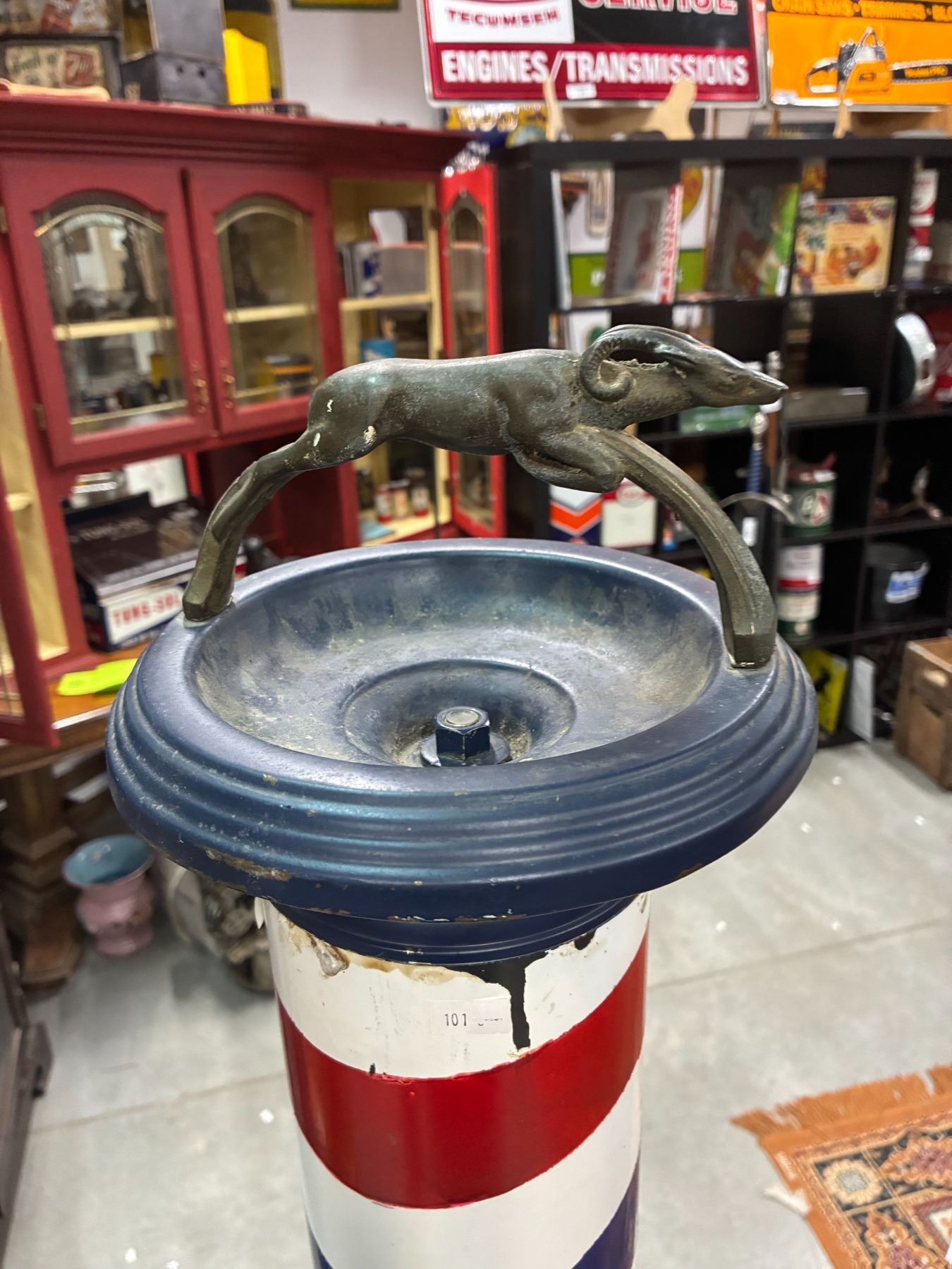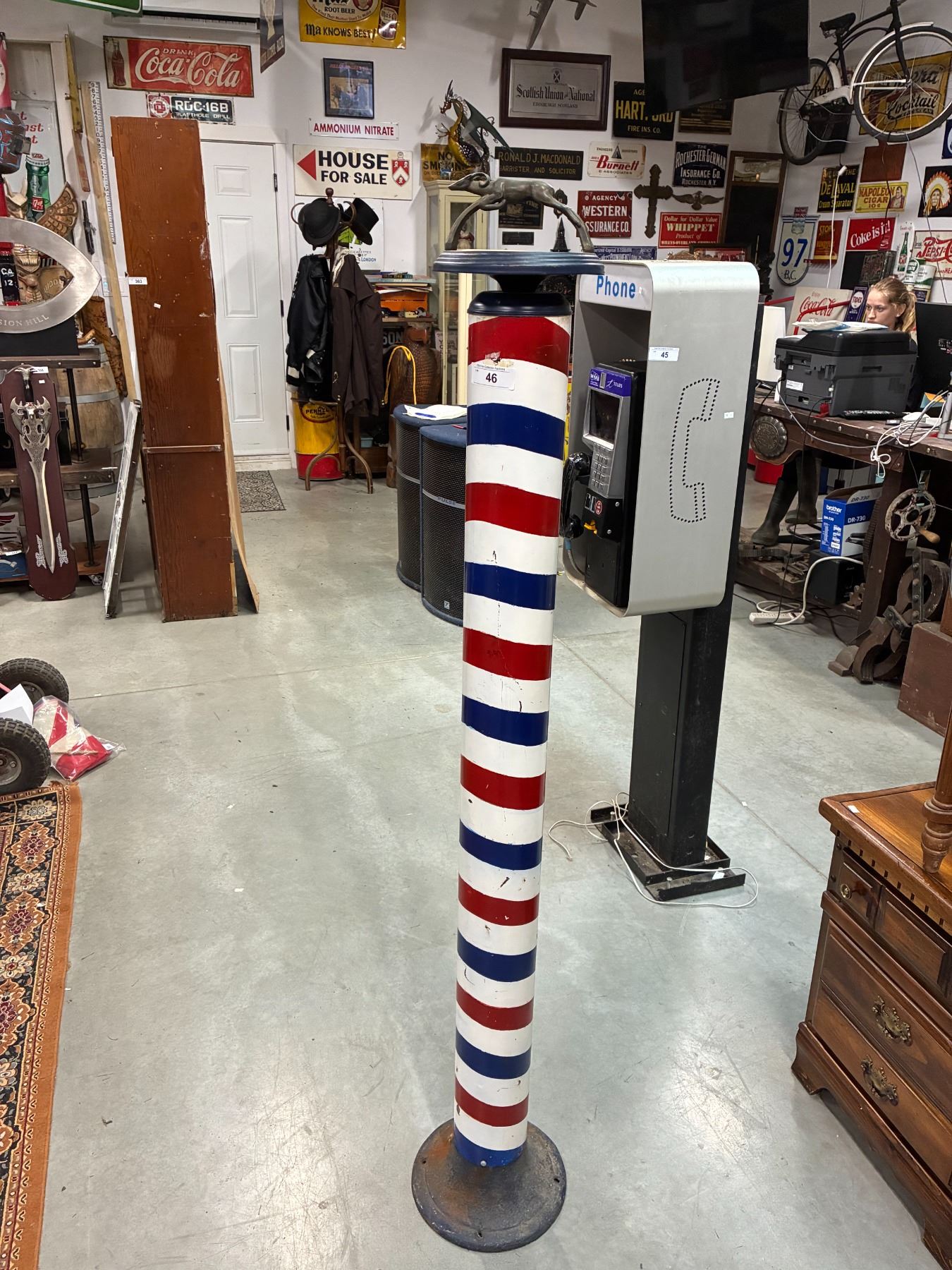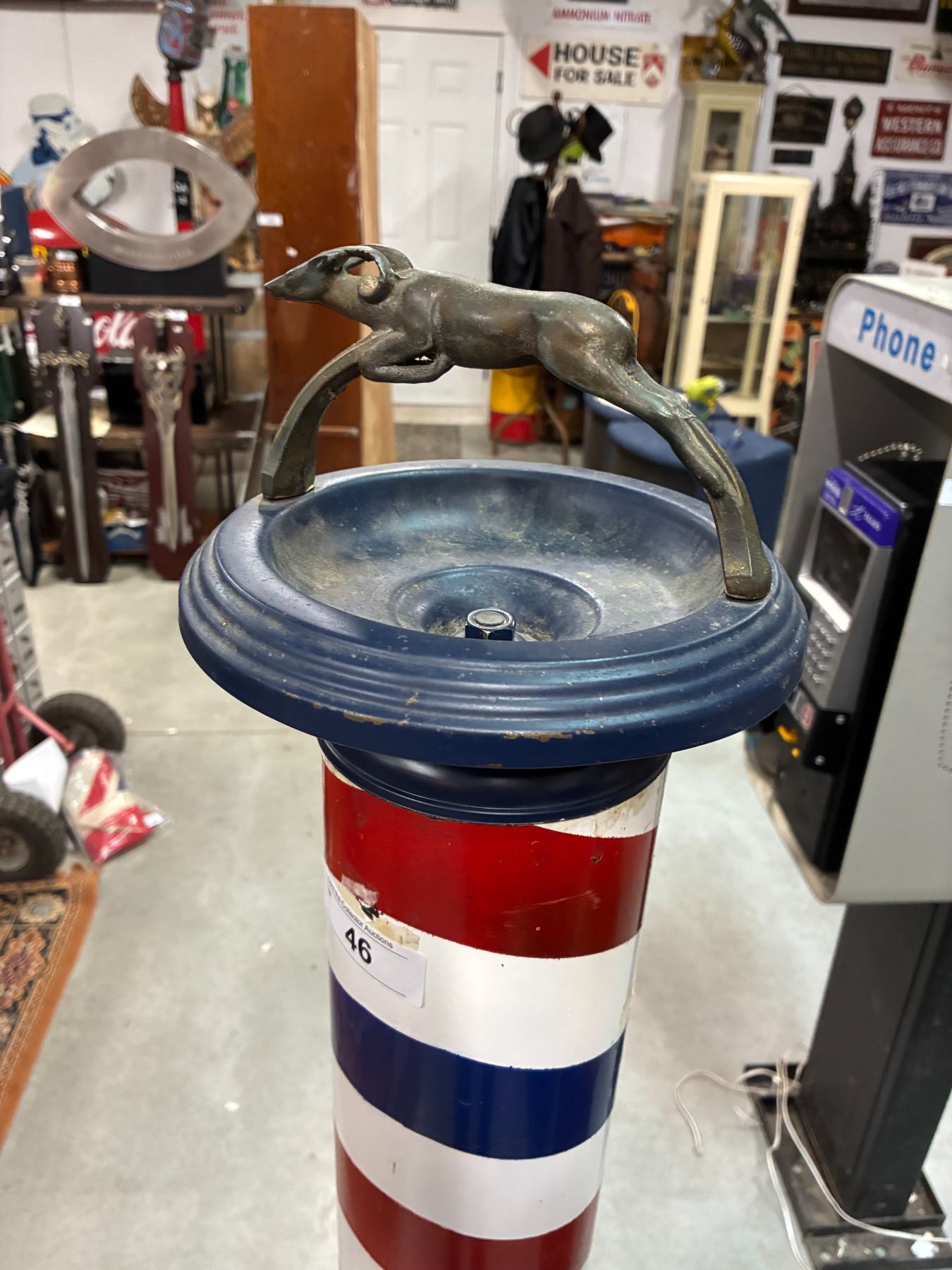 Lot 46 Very rare metal barber pole with gazelle ashtray, 64" tall