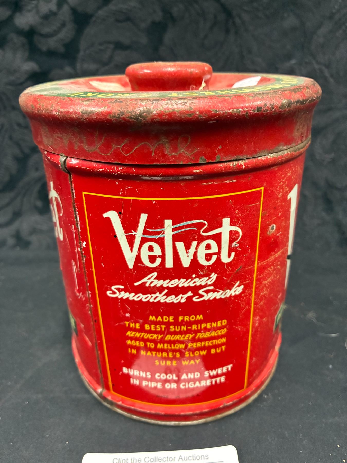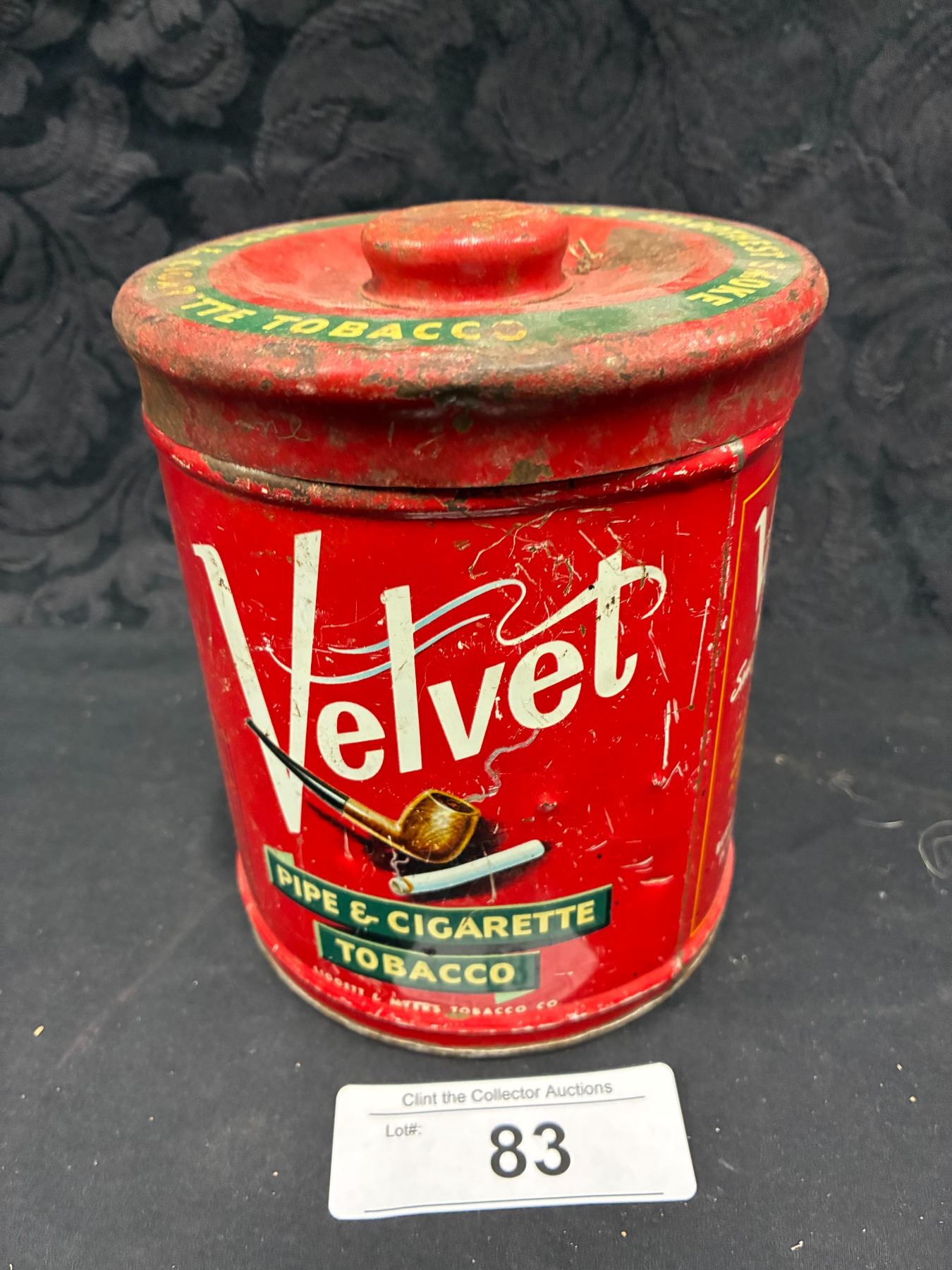 Lot 83 Vintage Velvet Pipe and Cigarette Tobacco tin, Great Graphics