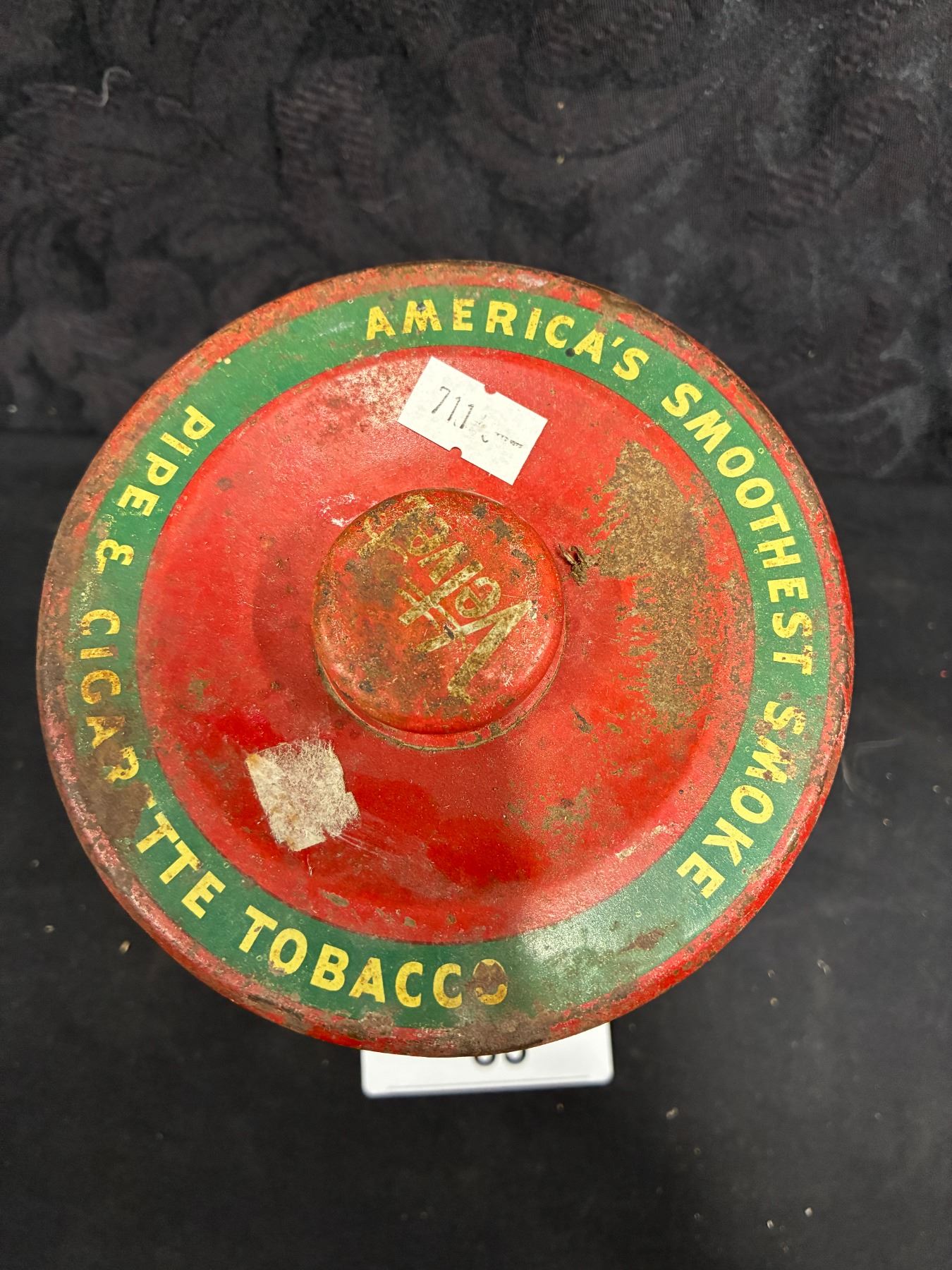 Vintage Velvet Pipe and Cigarette Tobacco tin, Great Graphics