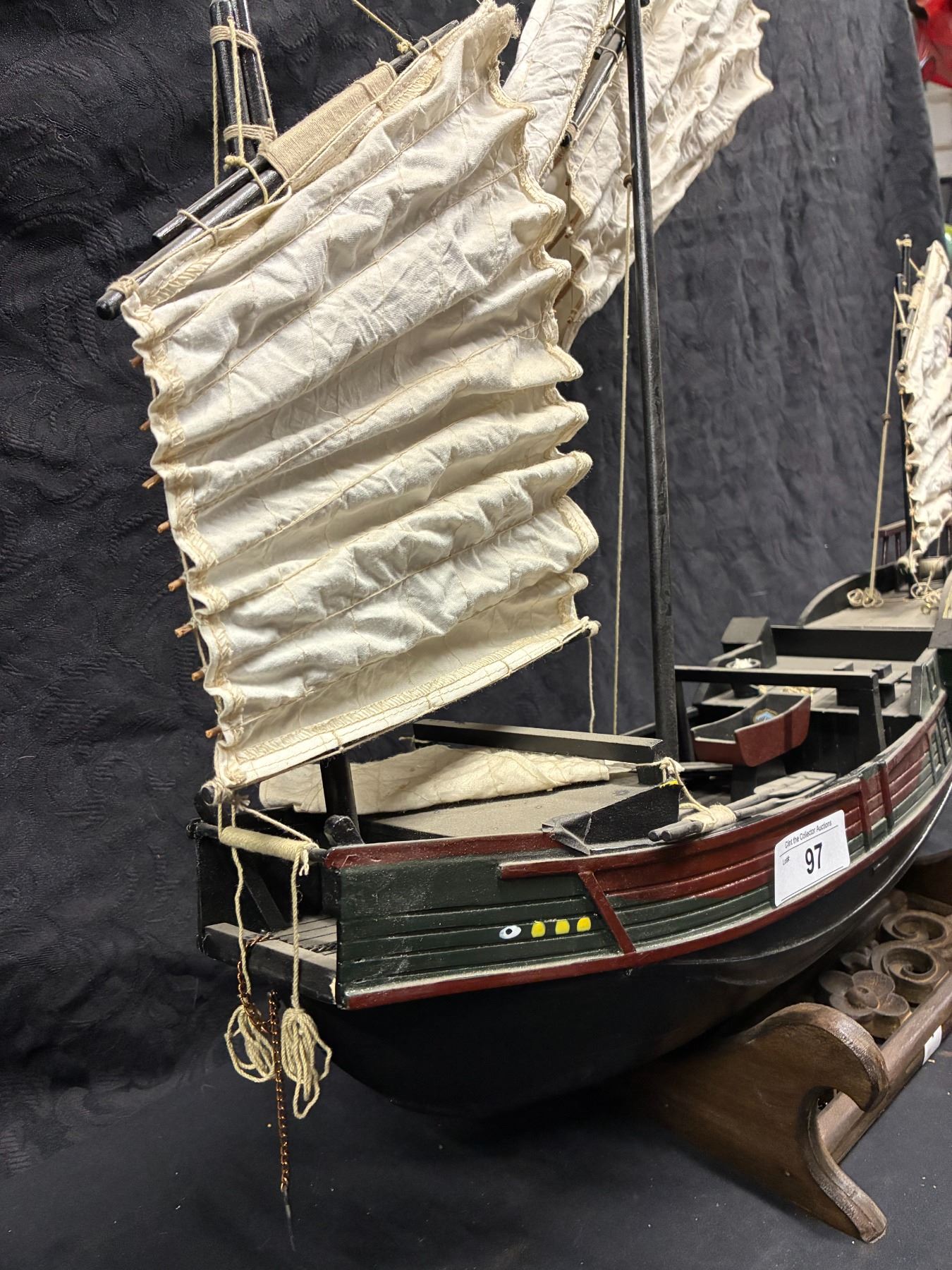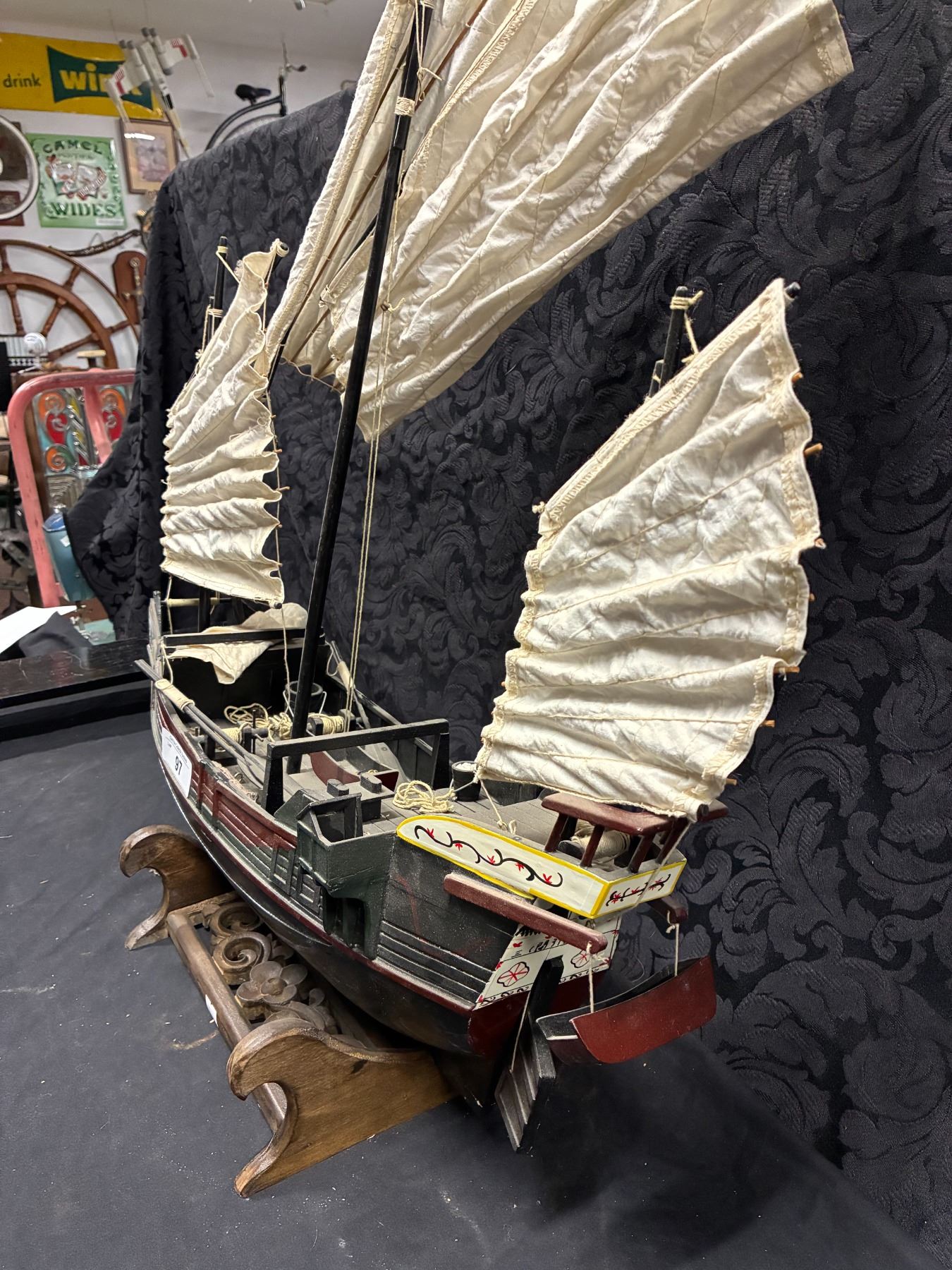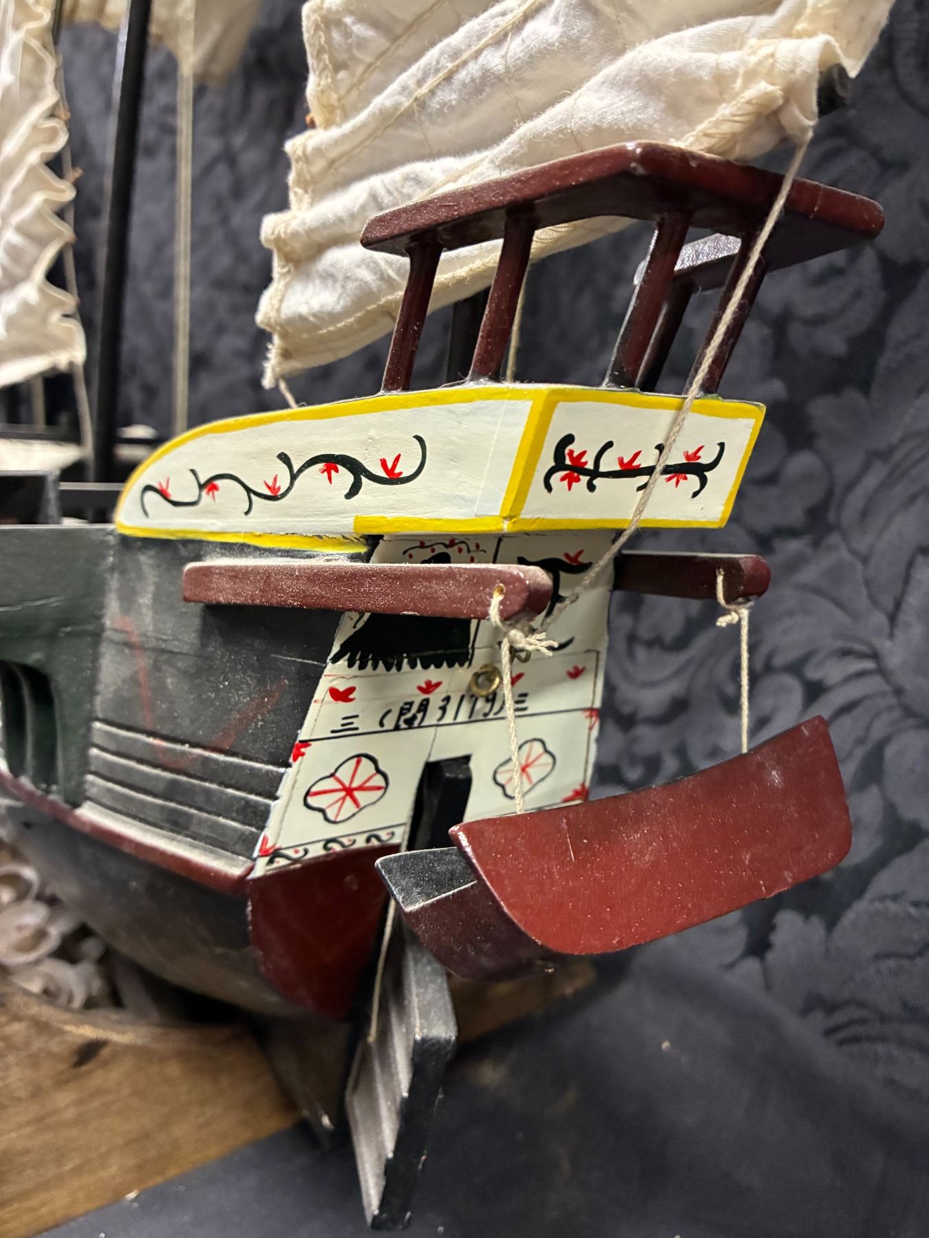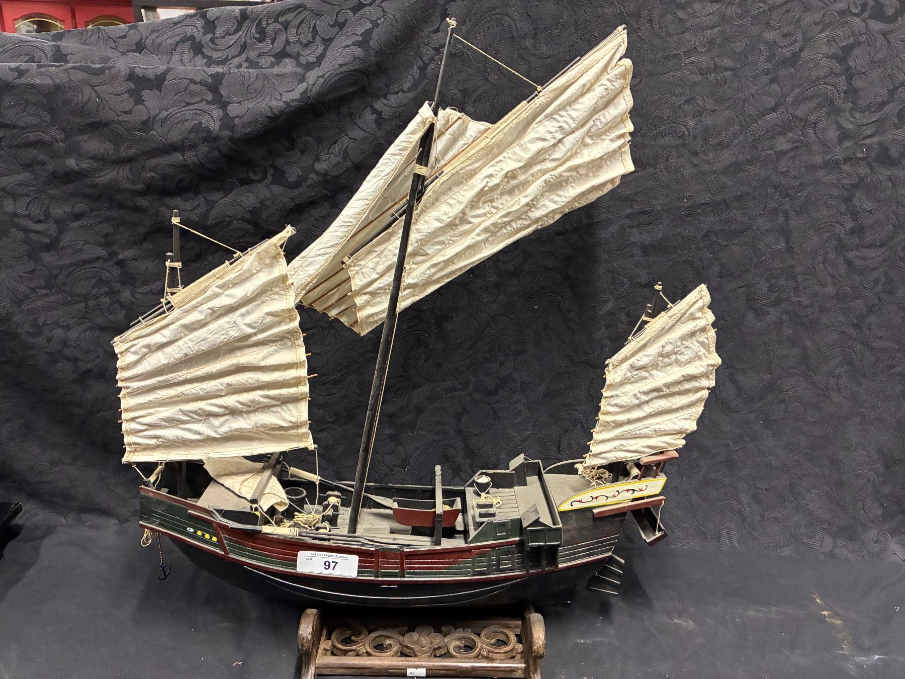 Lot 97 Highly detailed Chinese junk wooden boat, 24"