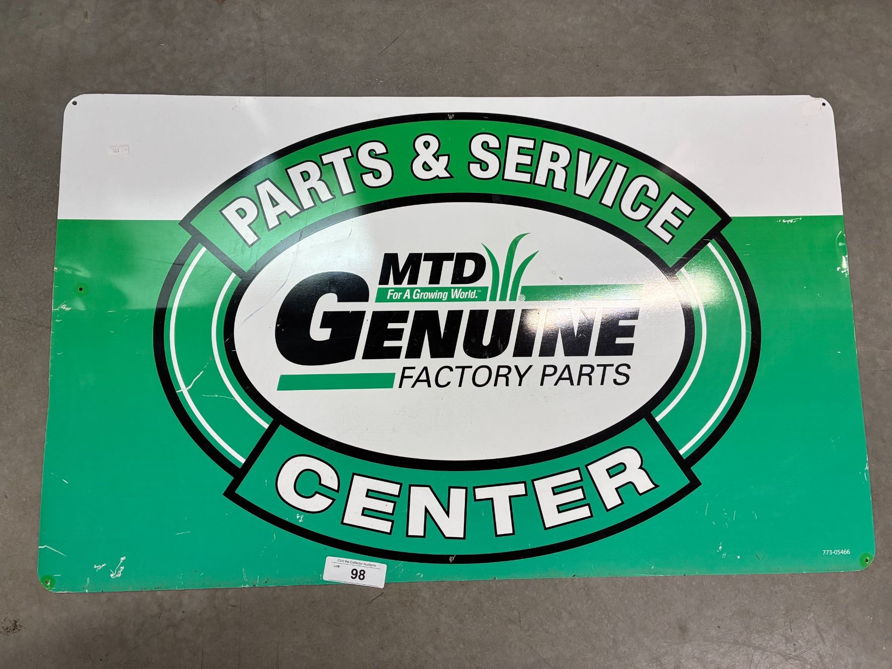 Lot 98 Vintage metal MTD Sign, 36"x22"